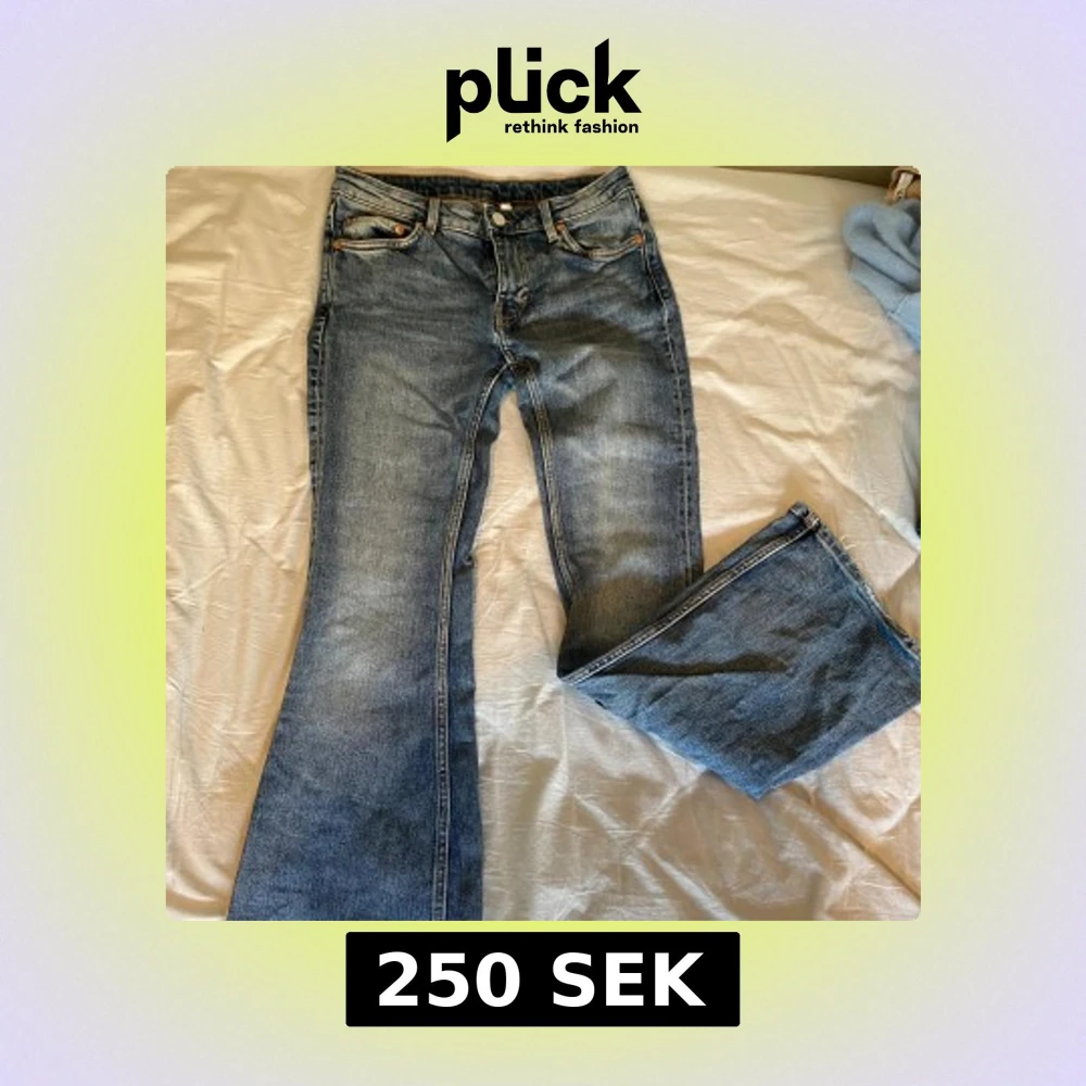 Bootcut jeans från weekday med medelhög midja. Skön kvalitet och lagom stretchiga. Skriv om du har frågor eller vill ha fler bilder.
