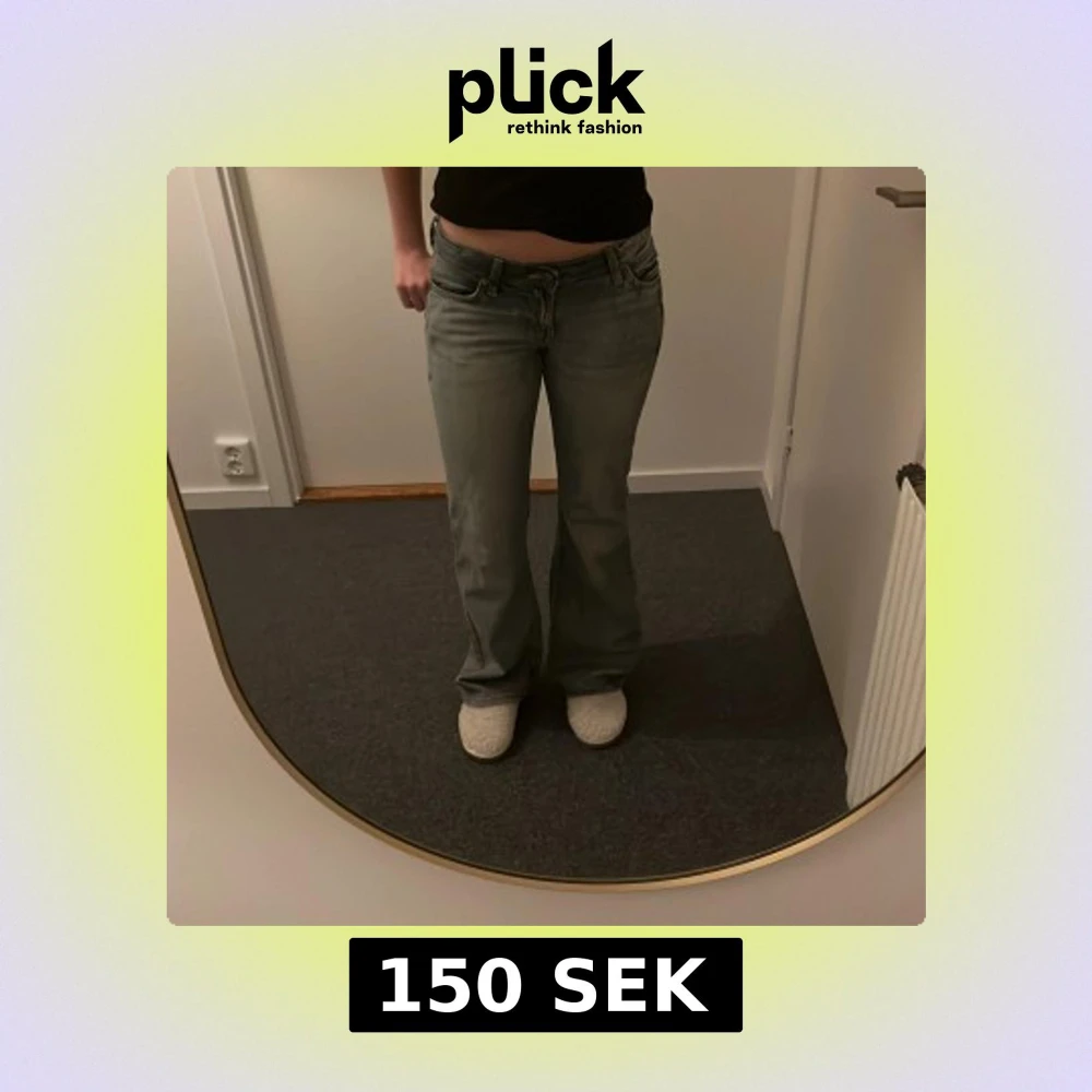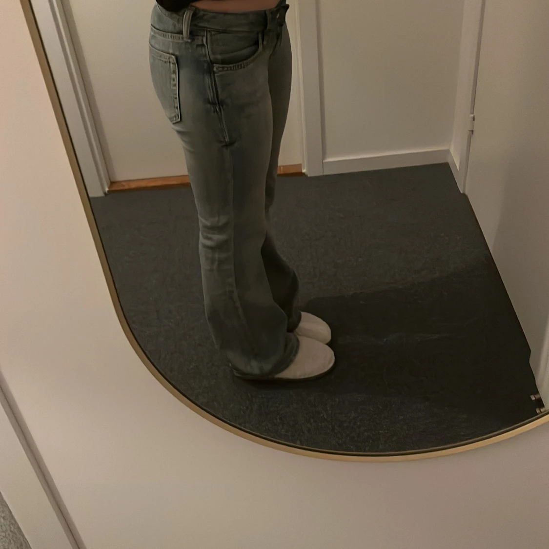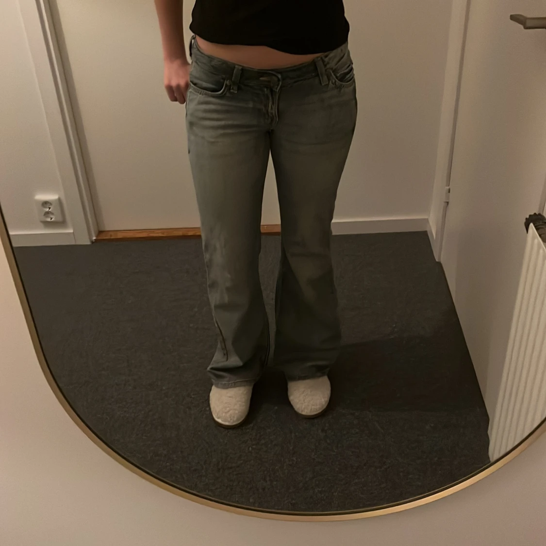 Säljer ett par snygga bootcut jeans i ljusblå denim med klassisk femficksdesign och låg midja. Jeansen har en lätt tvättad look. Perfekta för dig som gillar en avslappnad men trendig stil. Passar mig som är 163.