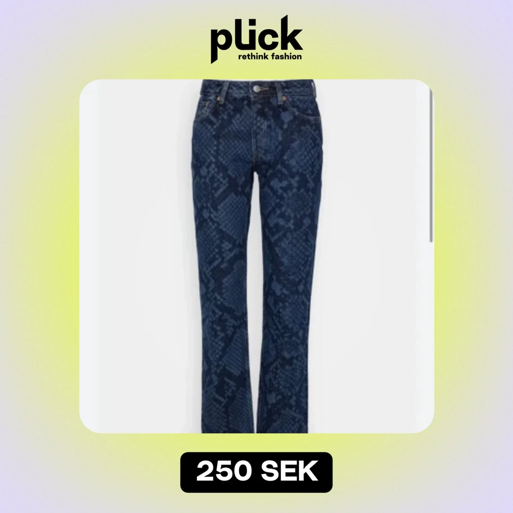 Jeans från weekday med ett blått fint mönster, straight. Superfina och kan matchas till mycket. Köpte för 500 men säljer för hälften: 250kr