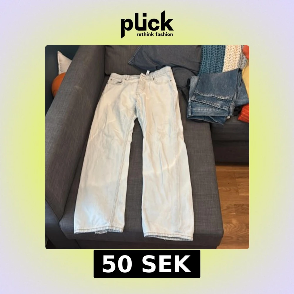 Säljer dessa weekday space jeans. De är i ett ganska bra skick bortsett från att de är slitna vid botten av dem. Storlek W31/L32