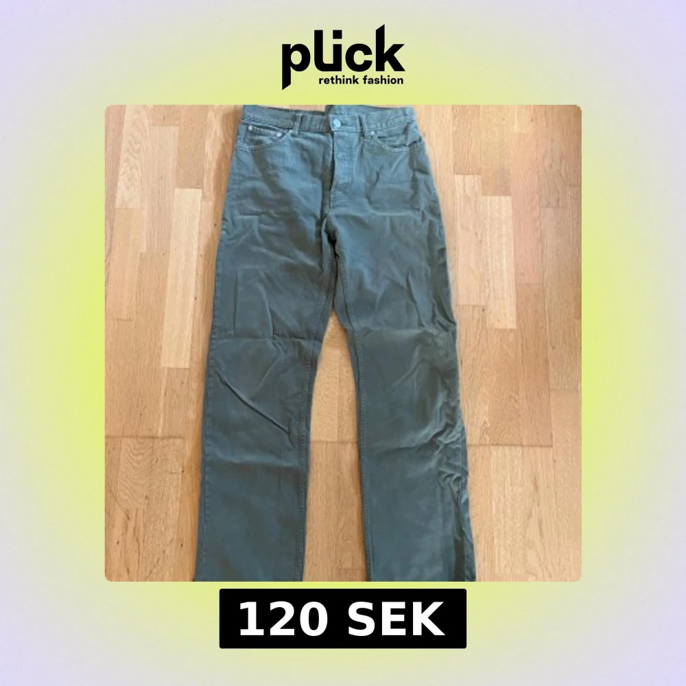 Snygga gröna jeans med rak passform och klassisk femficksdesign. Byxorna har normal midja och är tillverkade i ett mjukt bomullsmaterial som känns skönt mot huden. Perfekta för en avslappnad men stilren look. 30/32