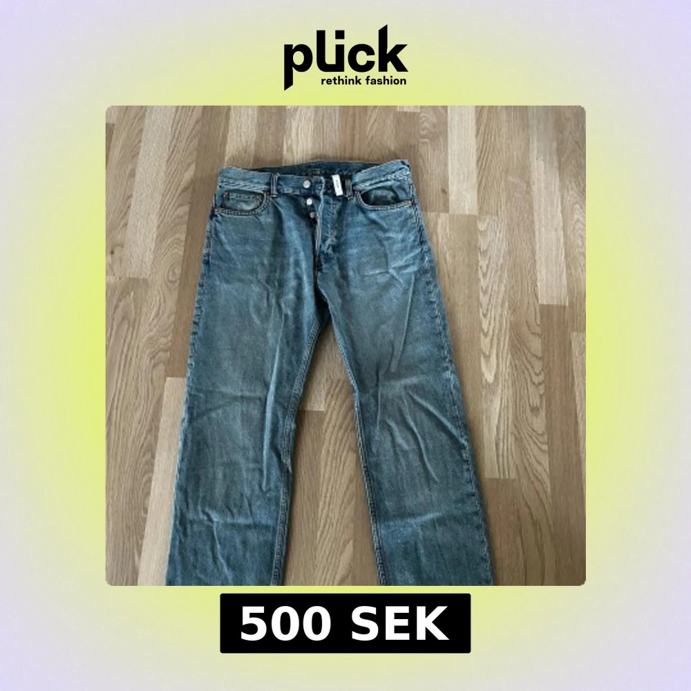 Blå jeans från Weekday, modell Space Relaxed Straight. Klassisk femficksdesign med raka ben och avslappnad passform. Jeansen är tillverkade i 100% bomull och har snygga kontrastsömmar. Sparsamt använda.
