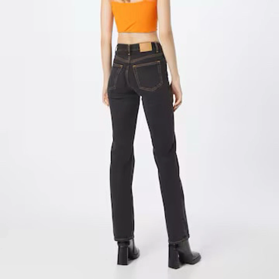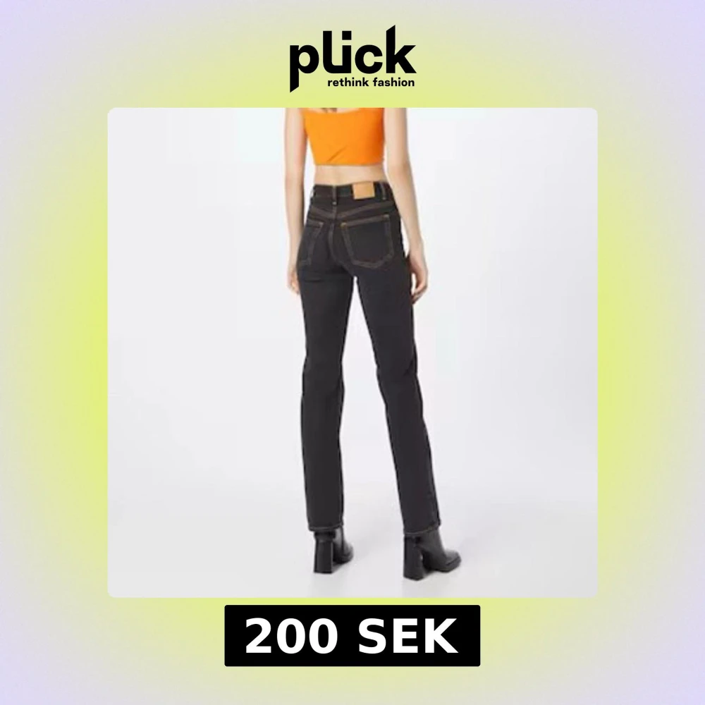 Snygga svarta jeans med raka ben och kontrastsömmar. Klassisk femficksmodell med låg midja och knappgylf. Perfekta till boots eller sneakers för en cool vardagslook.