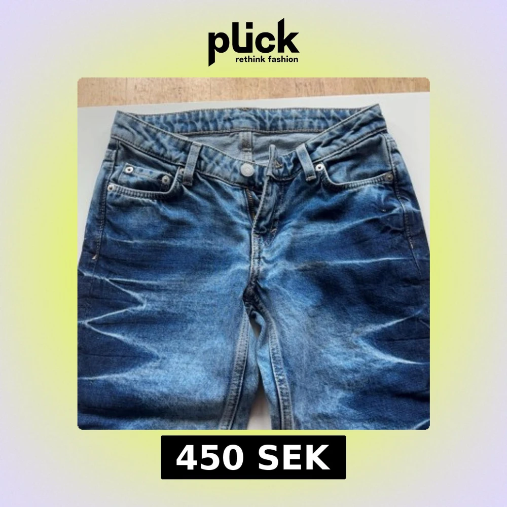 Säljer ett par coola blå jeans från Weekday med snyggt tvättad effekt och ljusa detaljer. Säljer pga av att dem är för små. Pris kan diskuteras 💙💙💙