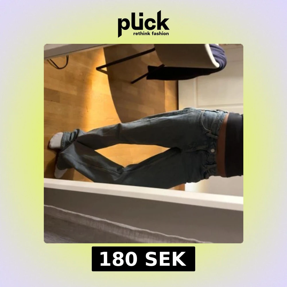 Säljer ett par ljusblå jeans från Monki med breda ben och klassisk femficksdesign. Jeansen har normal passform, dragkedja och knapp framtill samt bälteshällor. Perfekt för dig som gillar en avslappnad och trendig stil.