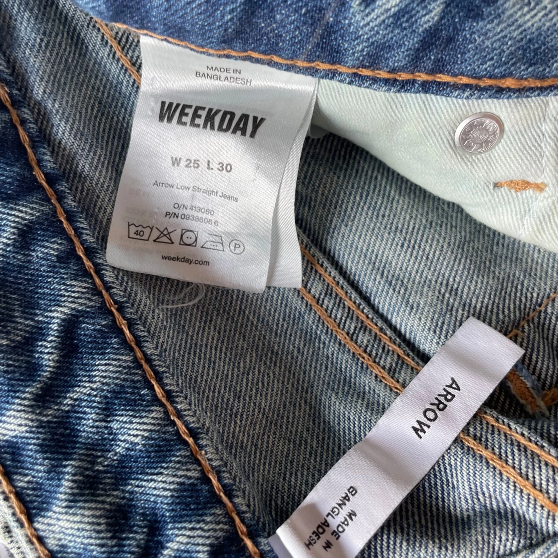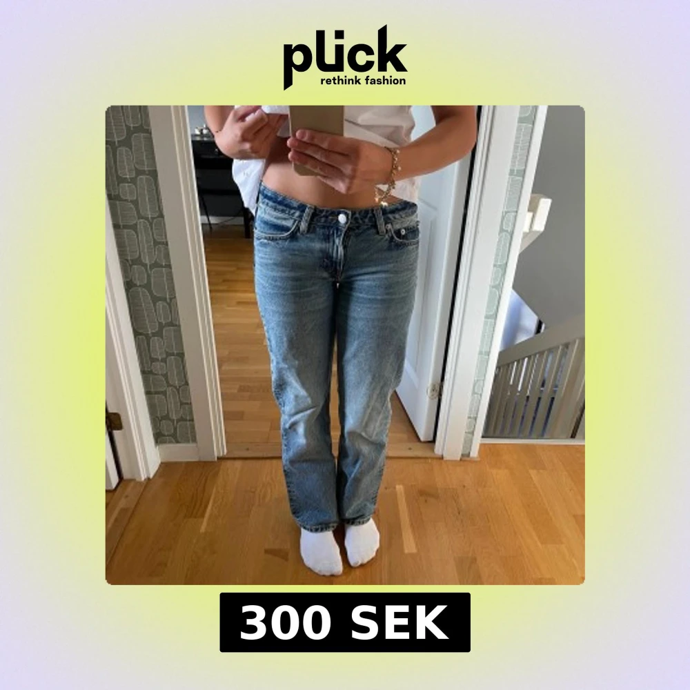 Jag säljer ett par Ljusblåa lågmidjade raka jeans från Weekday i storlek W 25 L30.🩵💙