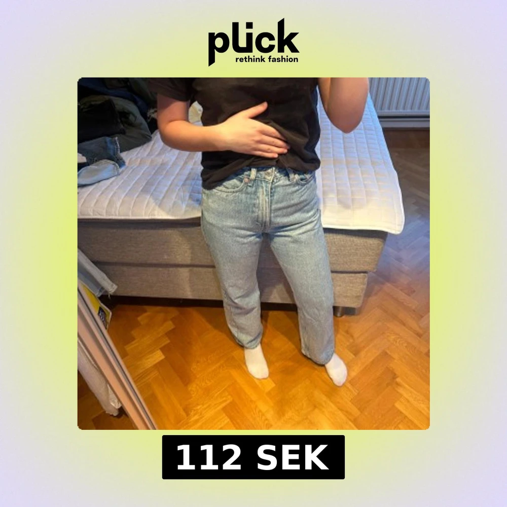 Säljer ett par högmidjade ljusblå jeans från weekday.