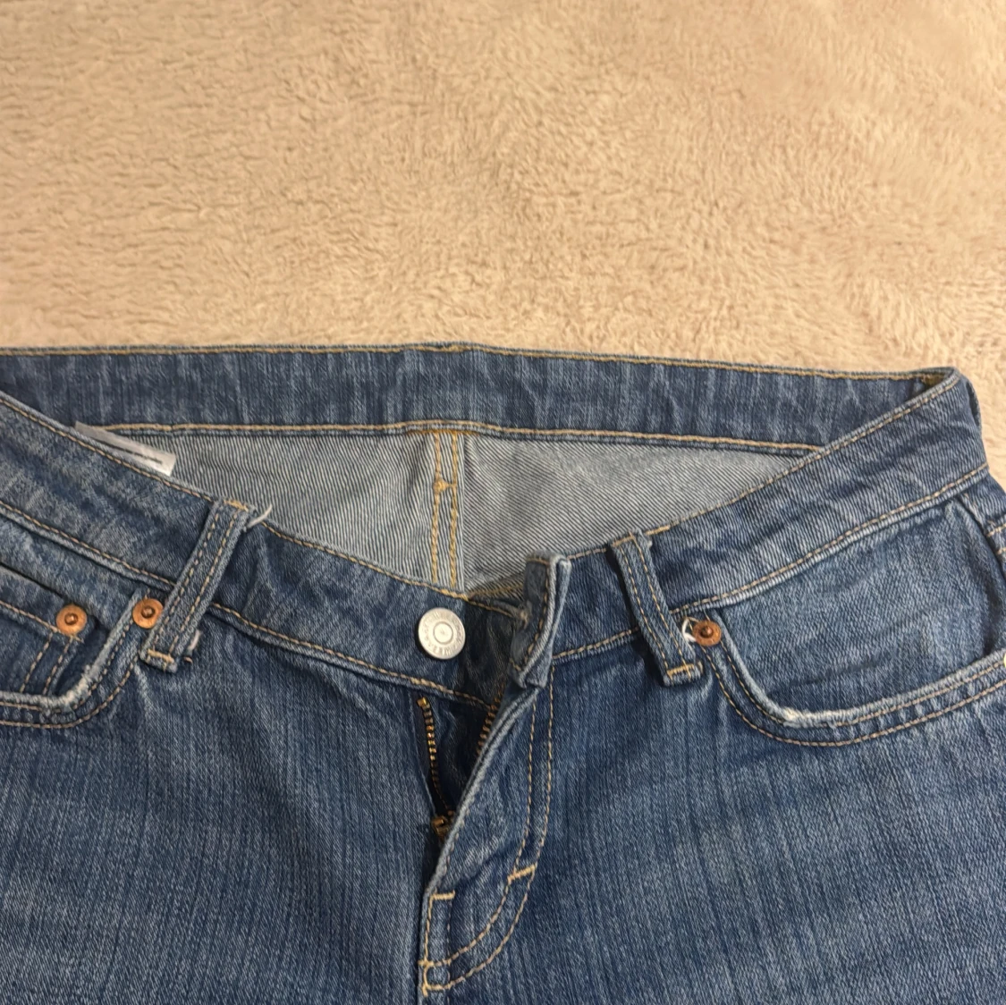 Blå bootcut jeans från Weekday. Är stora i storleken är som storlek S