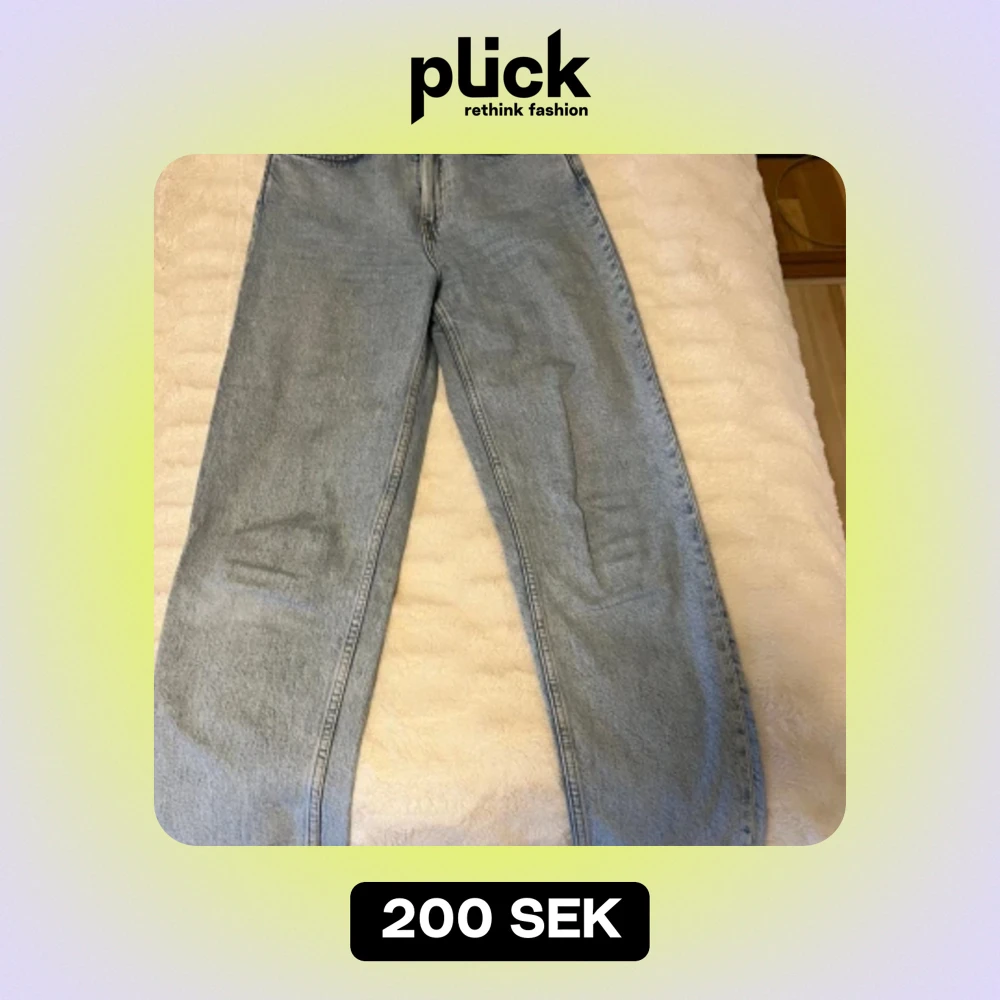 Ljusblå jeans ifrån weekday, fin passform då dom sitter lite tajtare vid lår och rumpa men sedan med raka ben, ankellånga/långa. Fint skick.