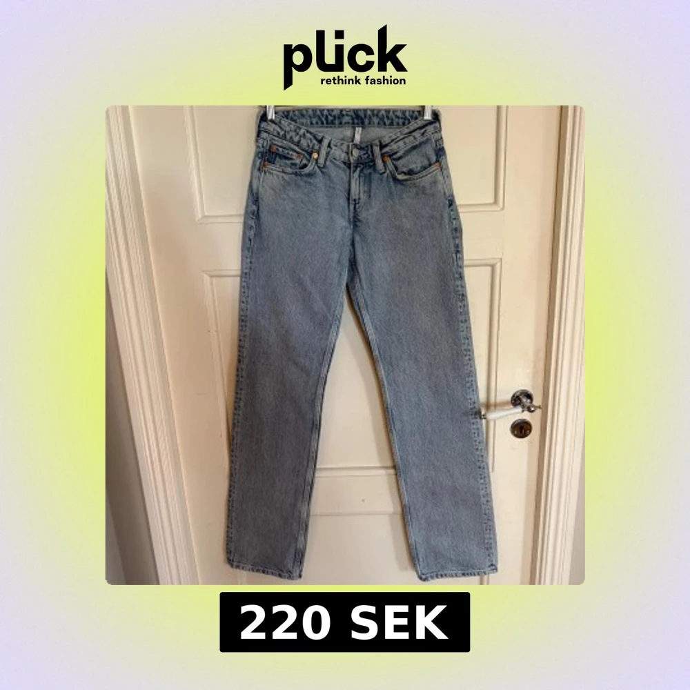 Lådmidjade jeans från weekday i modellen Arrow low. De är helt nya, aldrig använda. Midjemått: 38 cm. Innerbenslängd: 87.