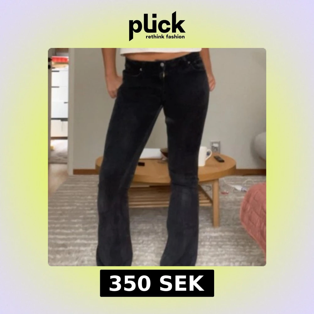 Säljer ett par lågmidjade svarta bootcut byxor från weekday. De är i bra skick men lappen längst bak har åkt av (se bild 2). Har sprättat upp de längst ned för lite extra längd❤️❤️