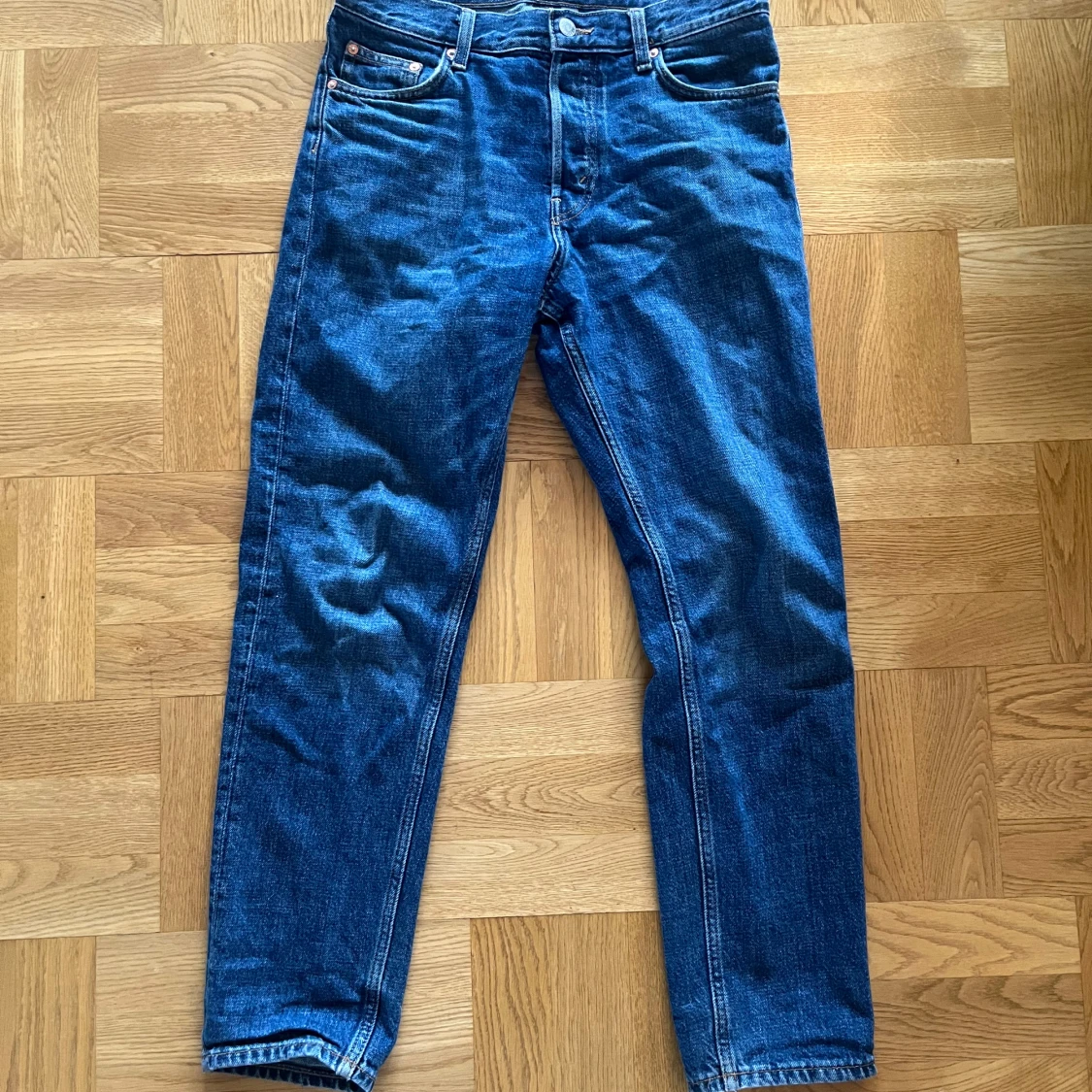 Snygga blå jeans från Weekday med en klassisk femficksdesign. De har en normal passform och är tillverkade i slitstarkt denim. Perfekta för en avslappnad stil. Barrel modell.