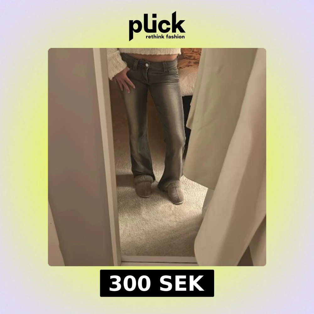 Snygga grå jeans med bootcut och låg midja. Jeansen har klassisk femficksdesign, silverfärgade knappar och dragkedja. Materialet är jeans med en lätt stretchig känsla och tvättad look. Perfekt passform för dig som gillar retrovibbar och markerad siluett.