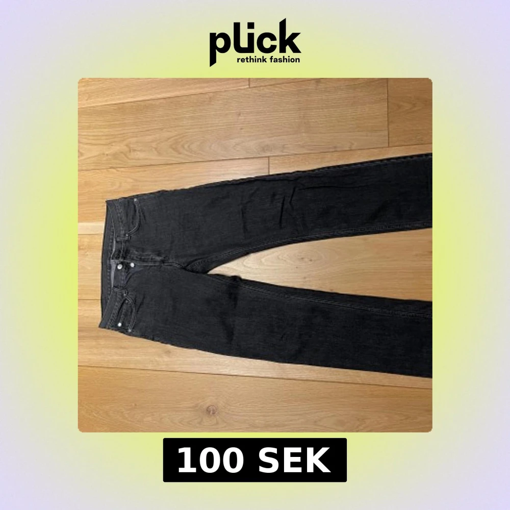 Säljer ett par svarta jeansbyxor med klassisk femficksdesign och raka ben. Byxorna har normal passform och stängs med dragkedja och knapp framtill. Perfekta till vardags och enkla att matcha med olika stilar.