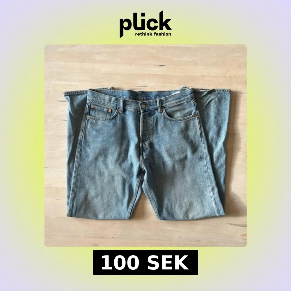 Säljer ett par ljusblå jeans från Weekday, modellen Space Relaxed Straight. Klassisk femficksdesign, raka ben och avslappnad passform. Jeansen är tillverkade i bomull och har snygga kontrastsömmar. Perfekta för en chill och stilren look.