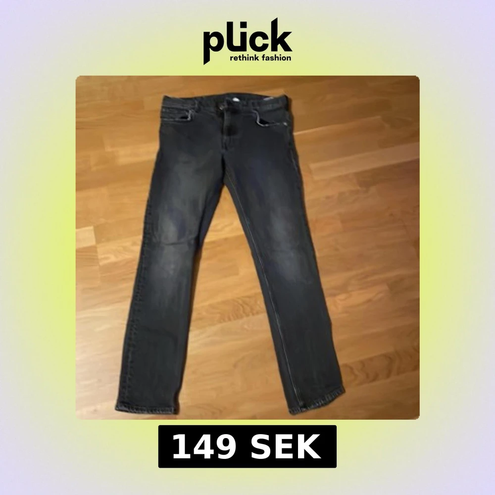 Säljer ett par svarta jeans från Weekday, modellen Friday. Jeansen har en klassisk femficksdesign, raka ben och snygg tvättad look. Materialet är jeans och de har dragkedja i gylfen. Perfekta för dig som gillar stilrena och bekväma jeans.