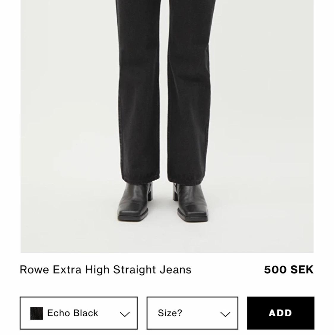 Ett par jeans från Weekday som kallas ”Rowe Extra High Straight Jeans” i storlek 27/30, använd Max 3ggr!! Pris kan diskuteras☺️