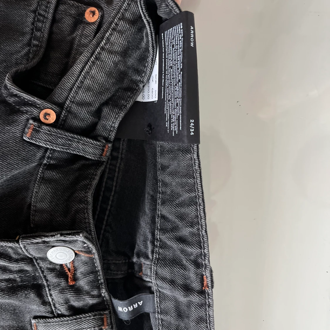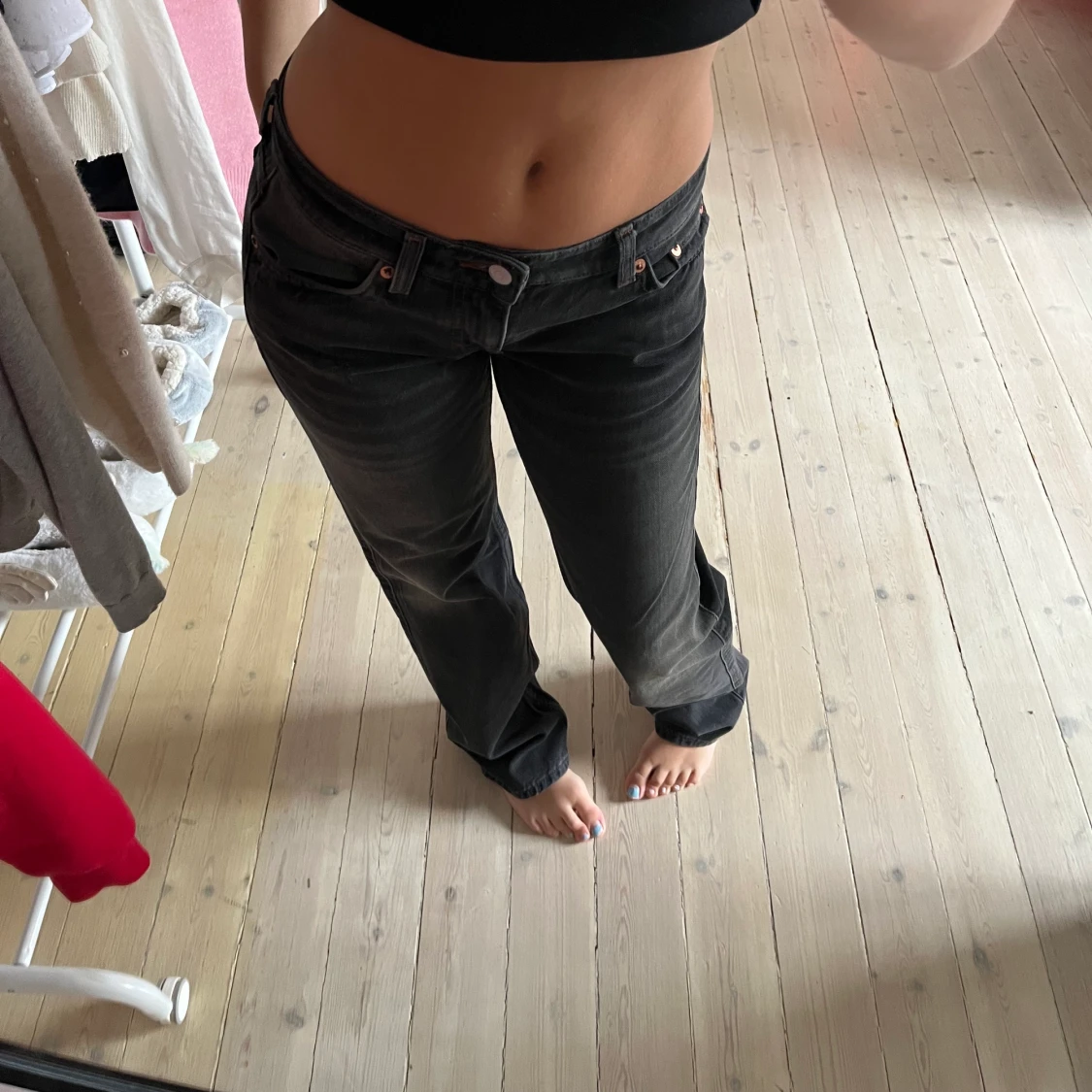 skit snygga svarta jeans från weekday i modellen ”arrow low straight jeans”🖤de är aldrig använda med lapp kvar då. nypris 500kr. slutsålda i den storleken på deras hemsida.