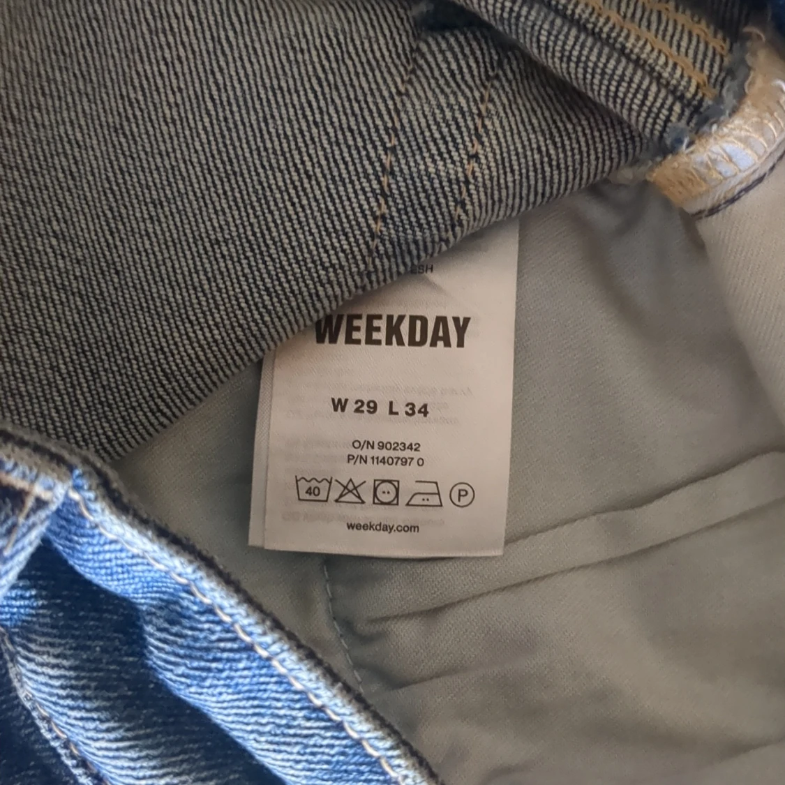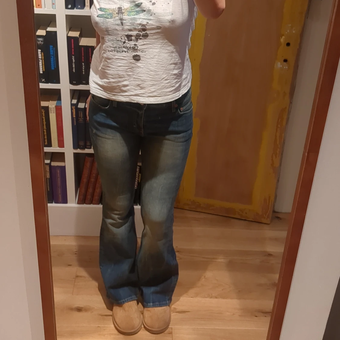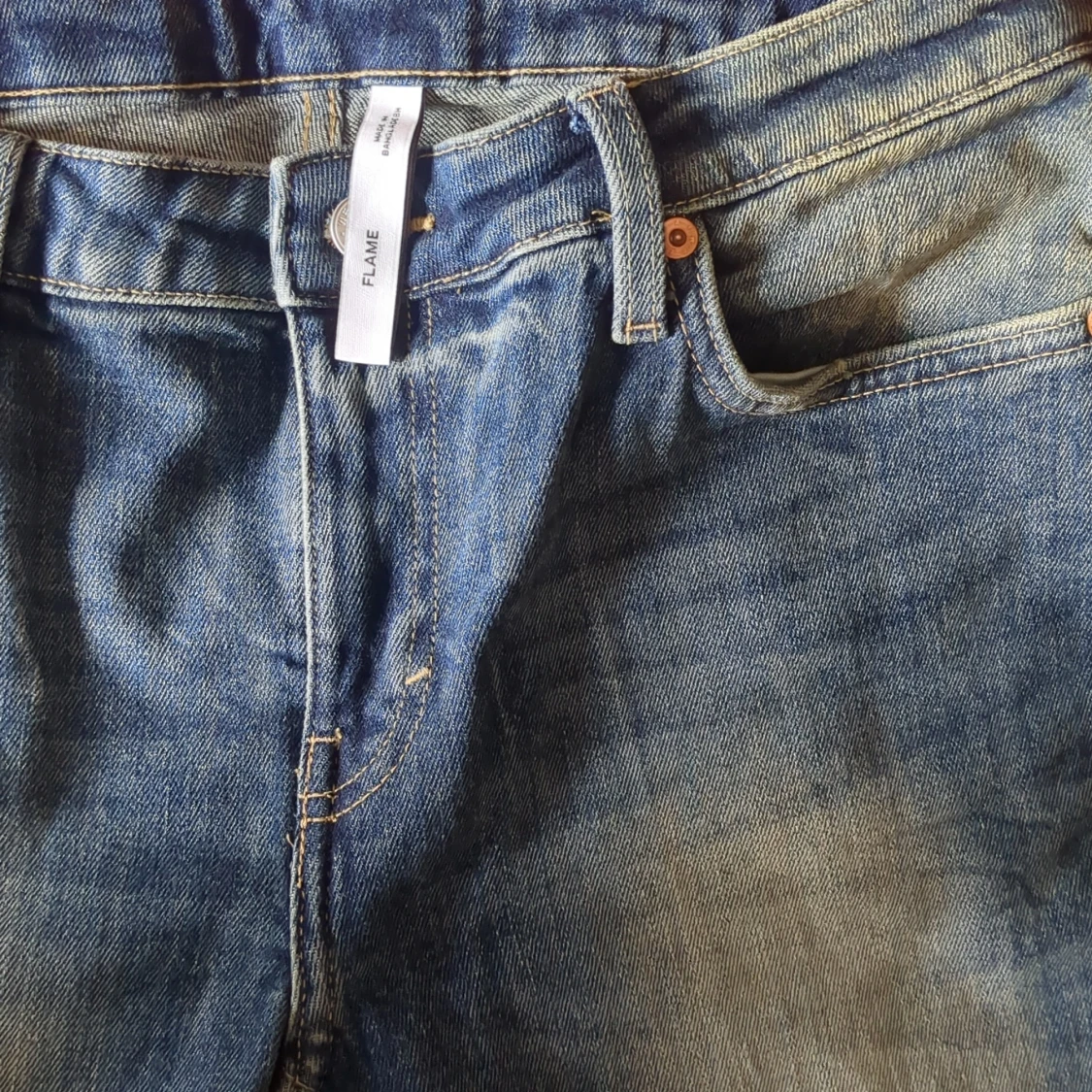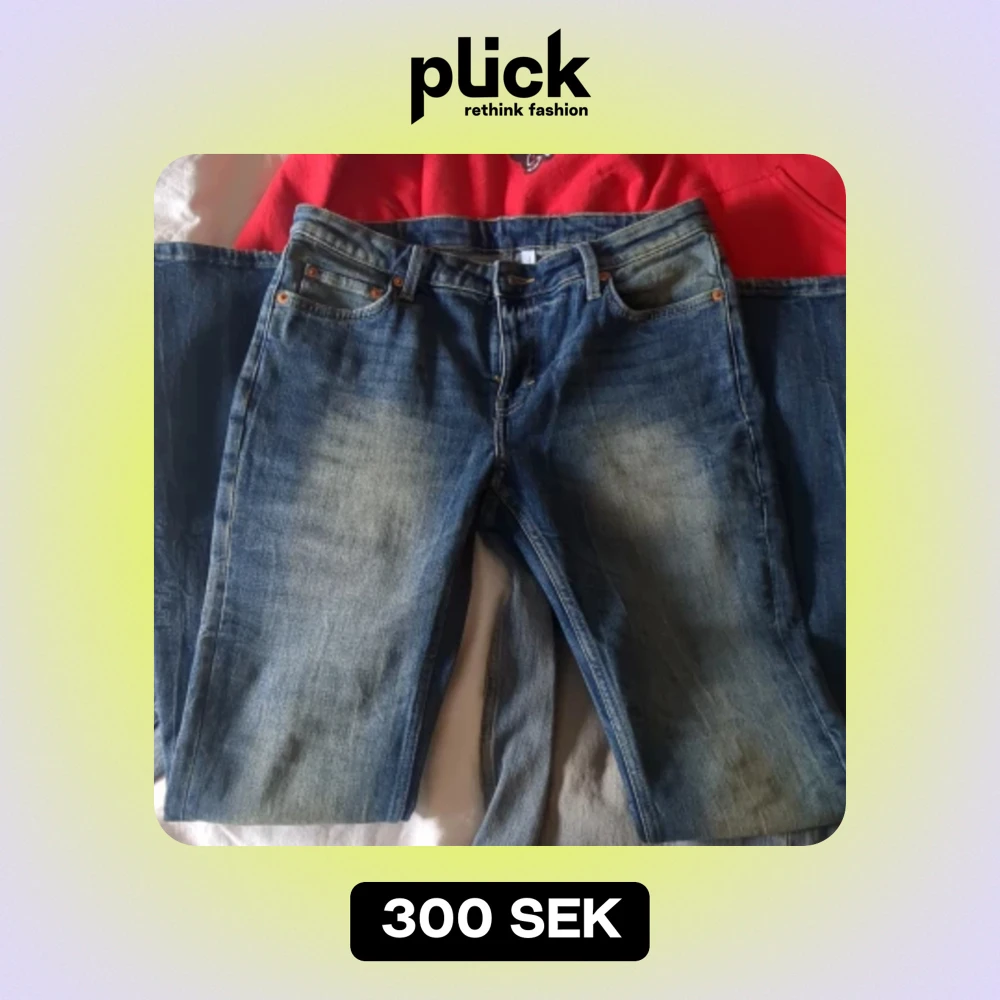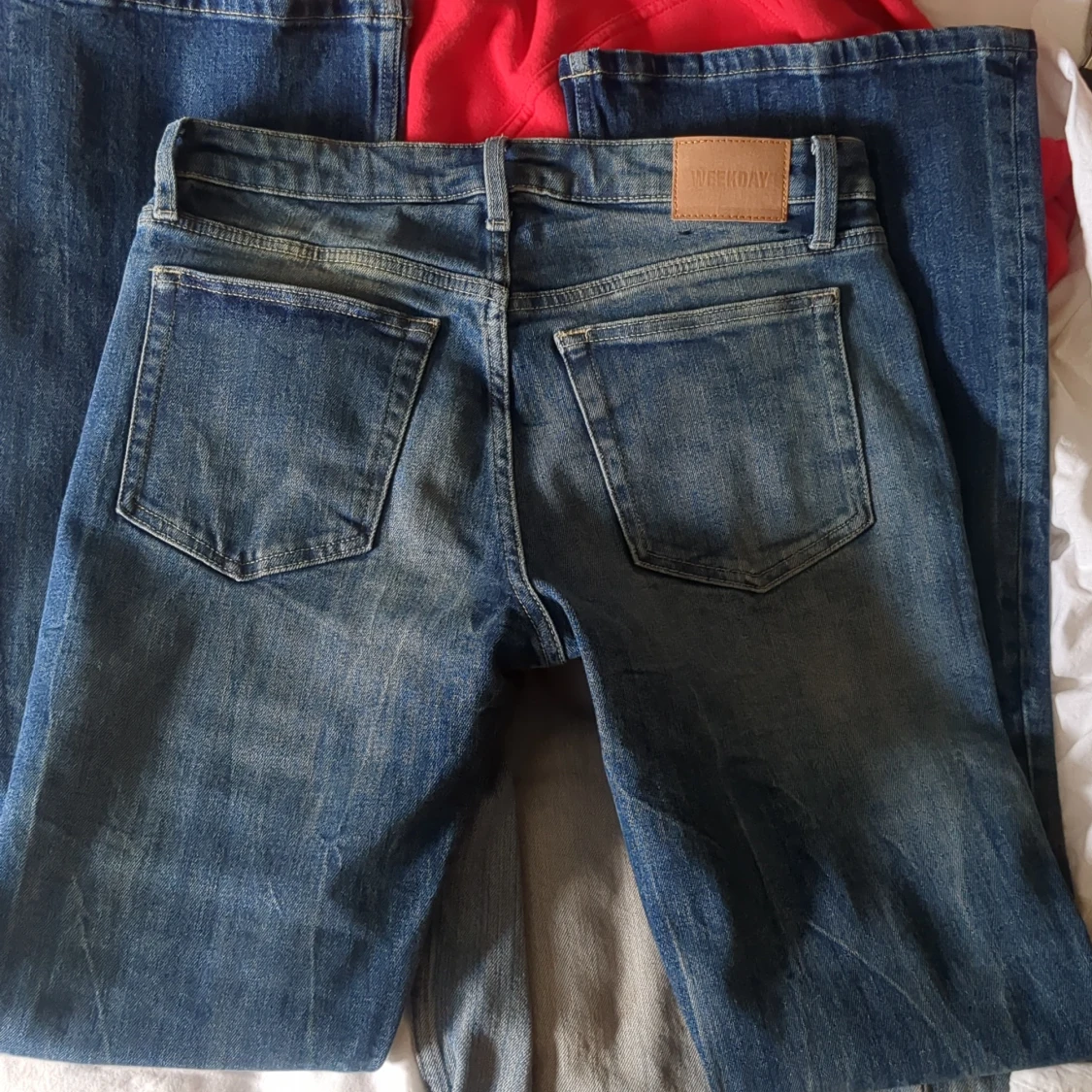 bootcut jeans med fet tvättfrån weekday (modellen flame) i storlek 29/34, aldrig använda, köpt för 600kr
