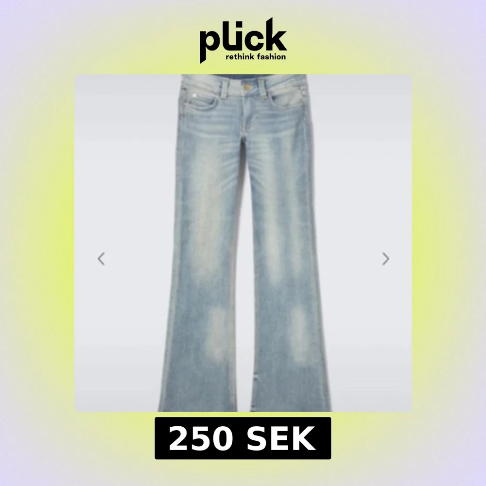 Bootcut jeans i ljusblå tvätt med klassisk femficksdesign och lätt slitna detaljer. Jeansen har normal passform och är tillverkade i jeansmaterial med dragkedja och knapp framtill. Perfekt för dig som gillar retrovibbar och avslappnad stil. Storlek 26/32 🩷