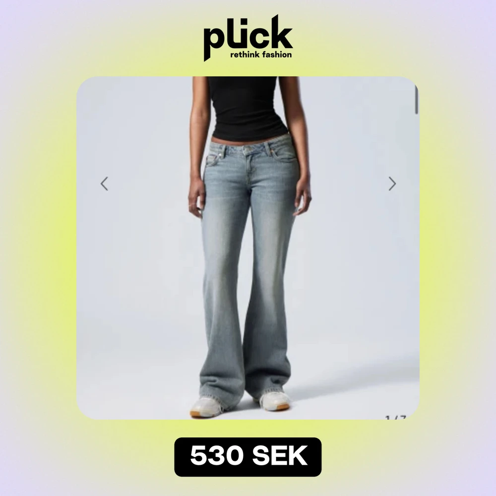 Säljer dessa snygga jeans från weekday i modellen Nova Low slim bootcut jeans i färgen trove blå, endast använda en gång