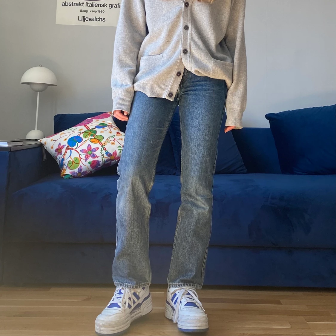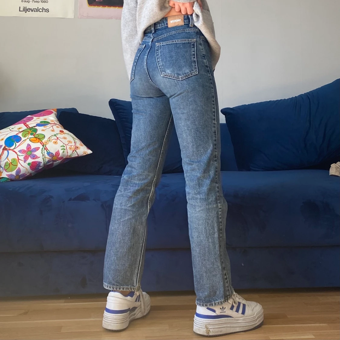 Jeans från Weekday i modellen Rowe. Använda och lite urtvättad färg, men i gott skick.