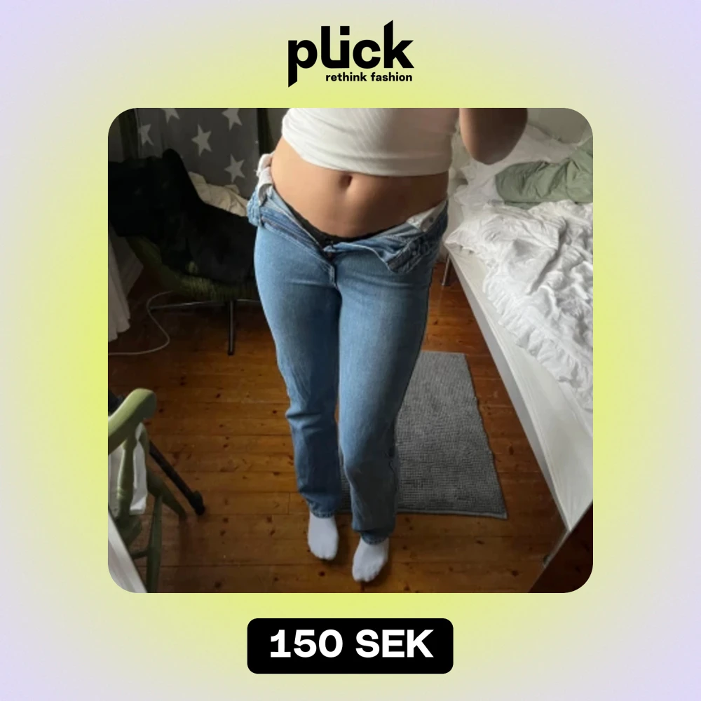 Raka blåa jeans från weekday i modellen ROWE, super snygga och knappt använda därav inga defekter eller slitningar längst ner, i storlek W24 L32 som motsvarar en 32-34🩷
