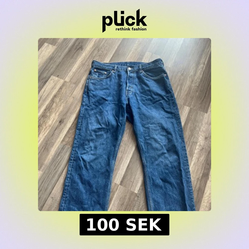 Säljer ett par blå jeans från Weekday, modellen Space. De har rak passform, klassisk femficksdesign och normal midja. Jeansen är i 100% bomull och har snygga kontrastsömmar. Perfekta för en avslappnad och stilren look.