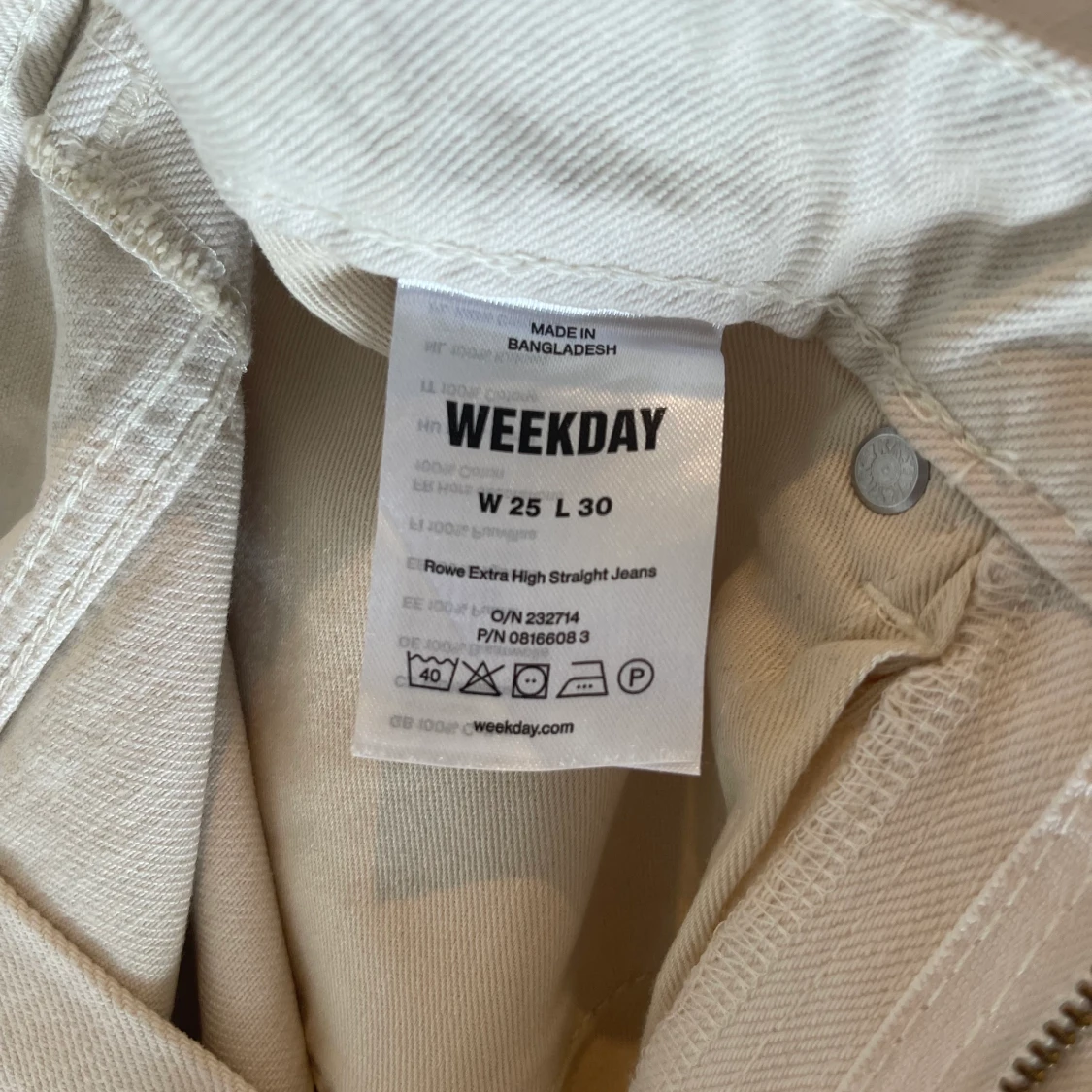 Jättefina weekday jeans i jättebra skick! Endast använda en eller två gånger. Passar mig väldigt bra som är 156cm lång både i midja och längd. W25, L30. Modellen heter Rowe extra High straight jeans. Köpta för 500kr.💛