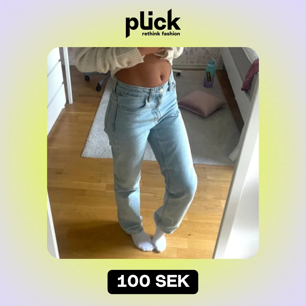 Ljusblå, nästintill oanvända jeans från Weekday. Midrise modell med raka ben, jag är 167 för referens.