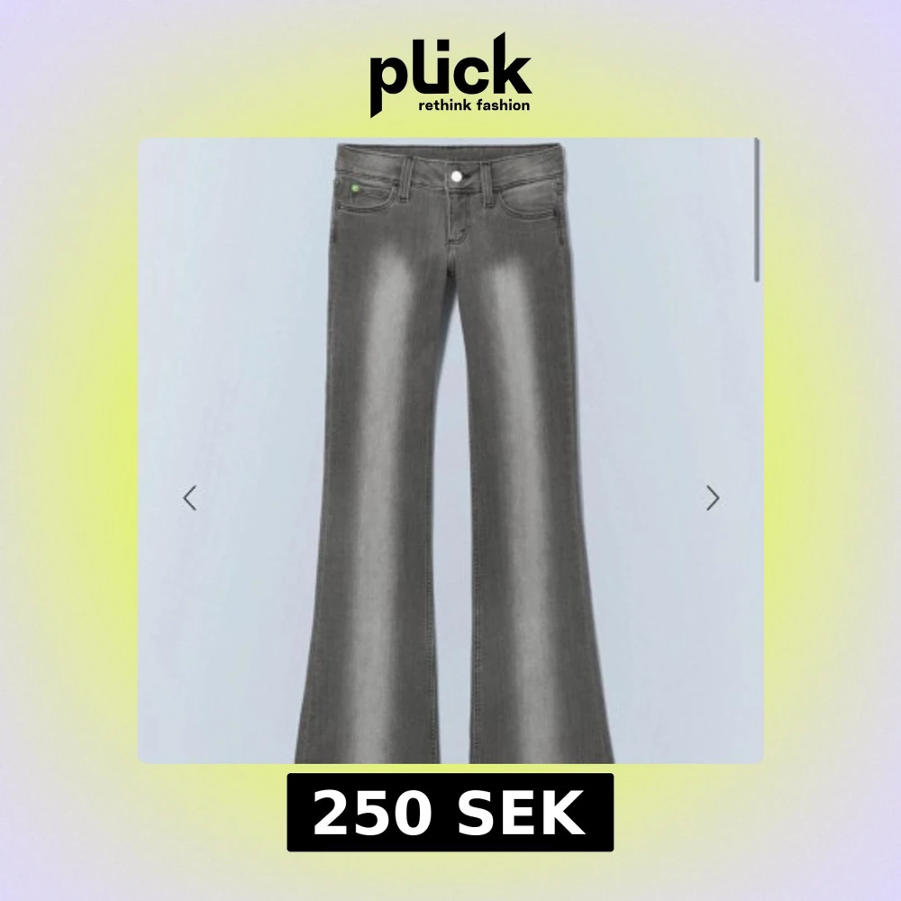 Säljer dessa coola Weekday jeansen som är lågmidjade och bootcut. De är i storlek 28/30 och är slutsålda på hemsidan! De har en liten defekt på låret men inget man ser när de är på! Skriv för frågor och priset är diskuterbart💗