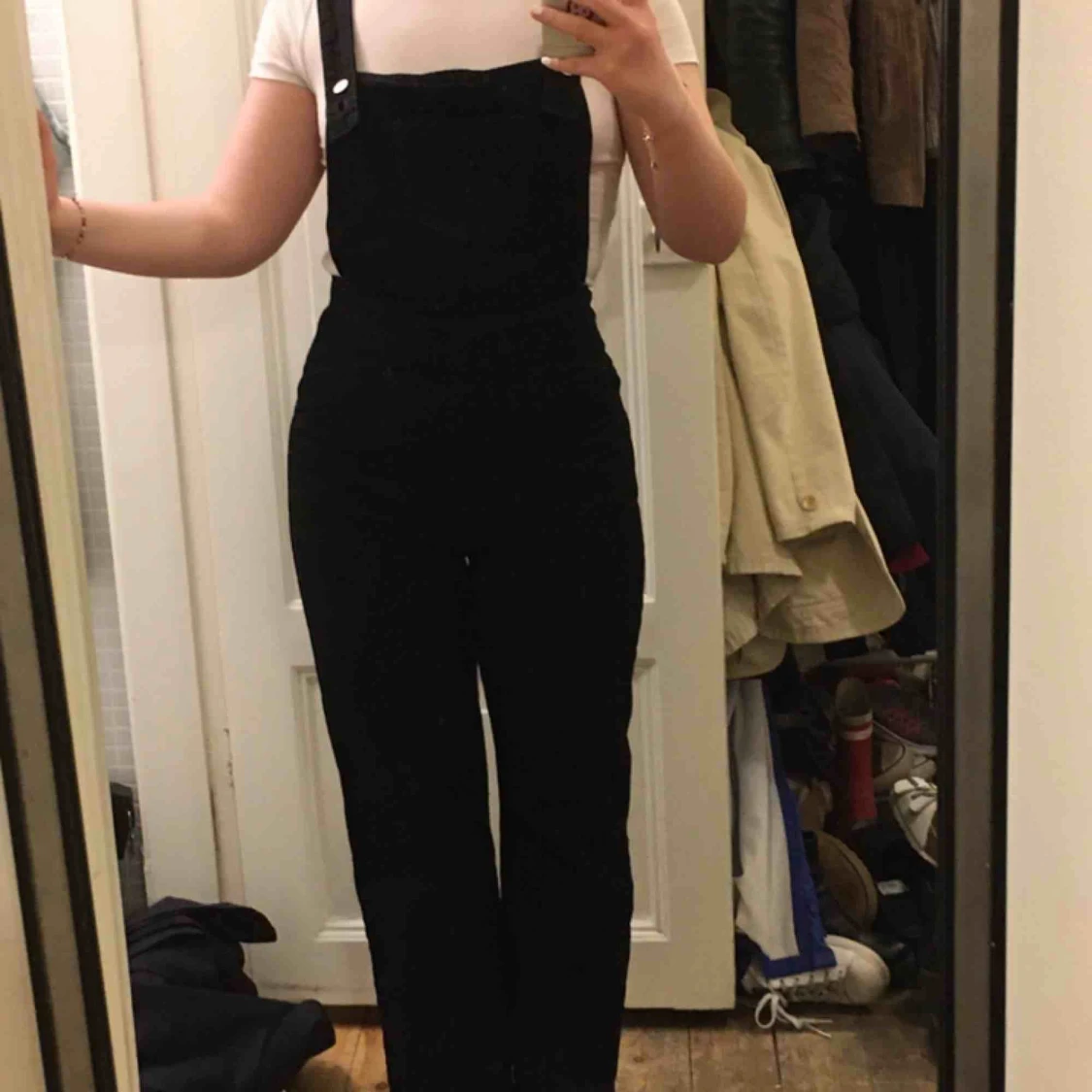 Skitsnygga svart snickarbyxor från Weekday. Inköpspris 600kr. Bra skick! Ficka på bröstet och framfickor. Banden går att justera och ha både kors på ryggen samt lodräta.
