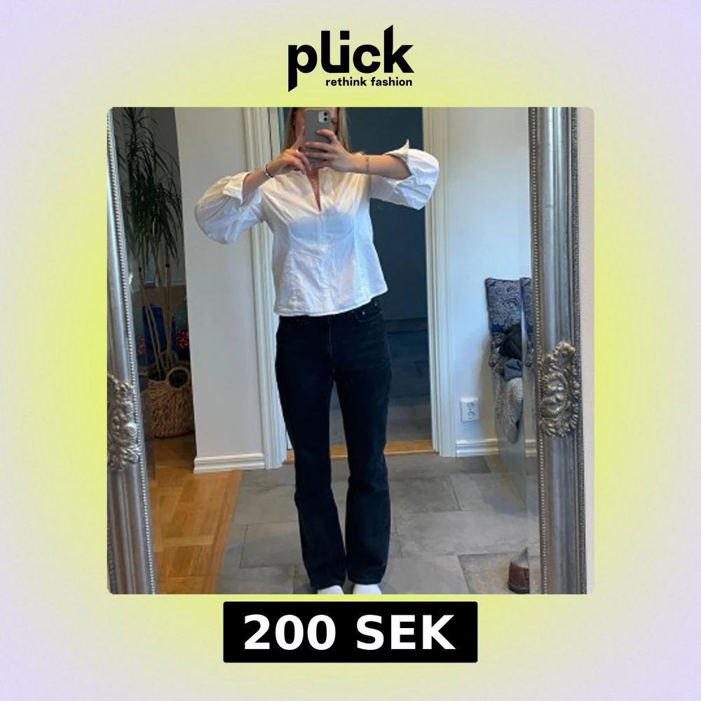 Säljer dessa svarta jeansen från Weekday i modellen ”Voyage high straight jeans”. Byxorna är i bra skick och knappt använda. Perfekta till vardags och lätta att matcha med olika toppar. Originalpris 500 kr. Skriv vid frågor eller fler bilder! 🌷🙌🏼