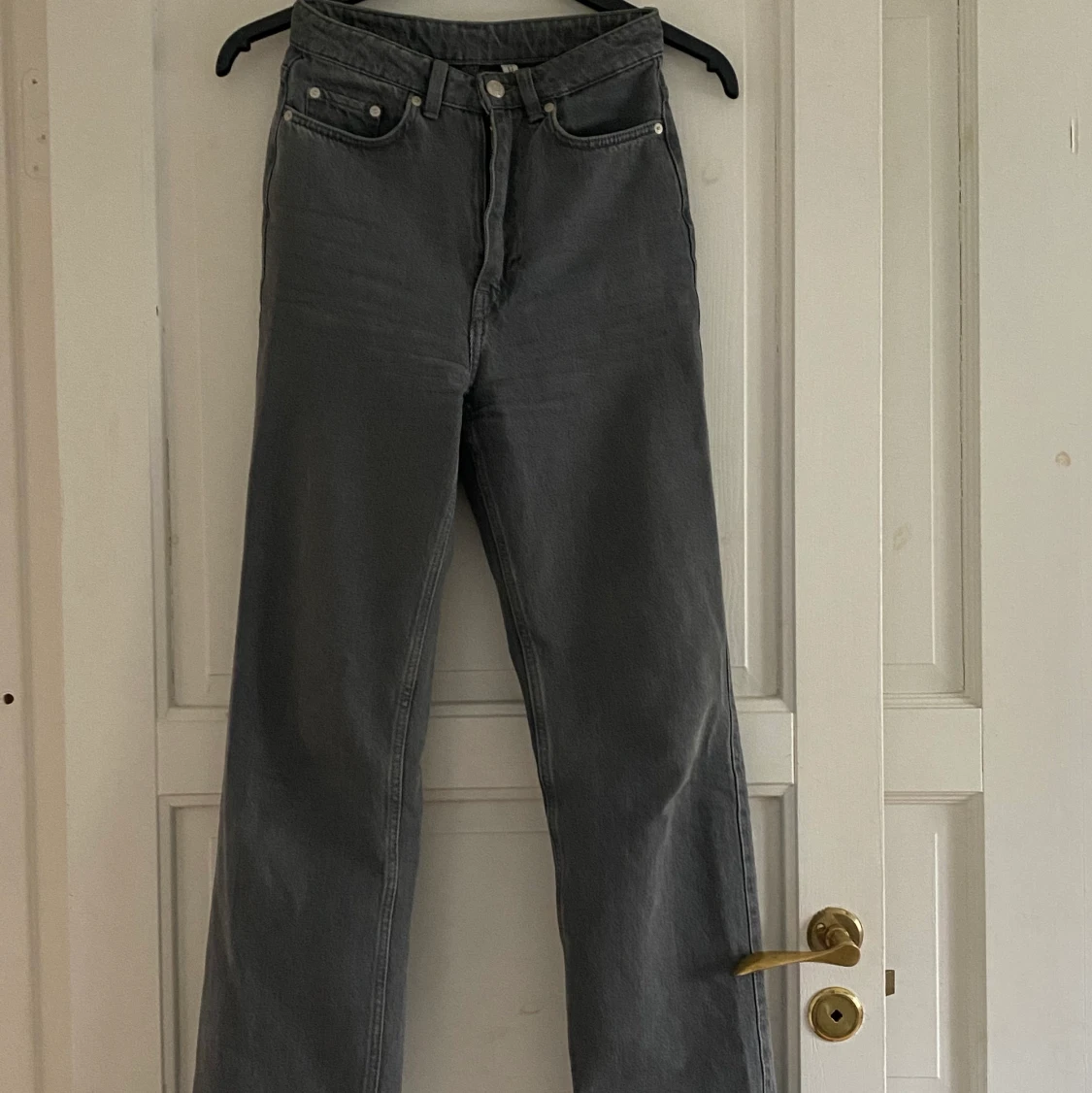 Gråa jeans från weekday i bra skick. Modell Row storlek W 24 L 32