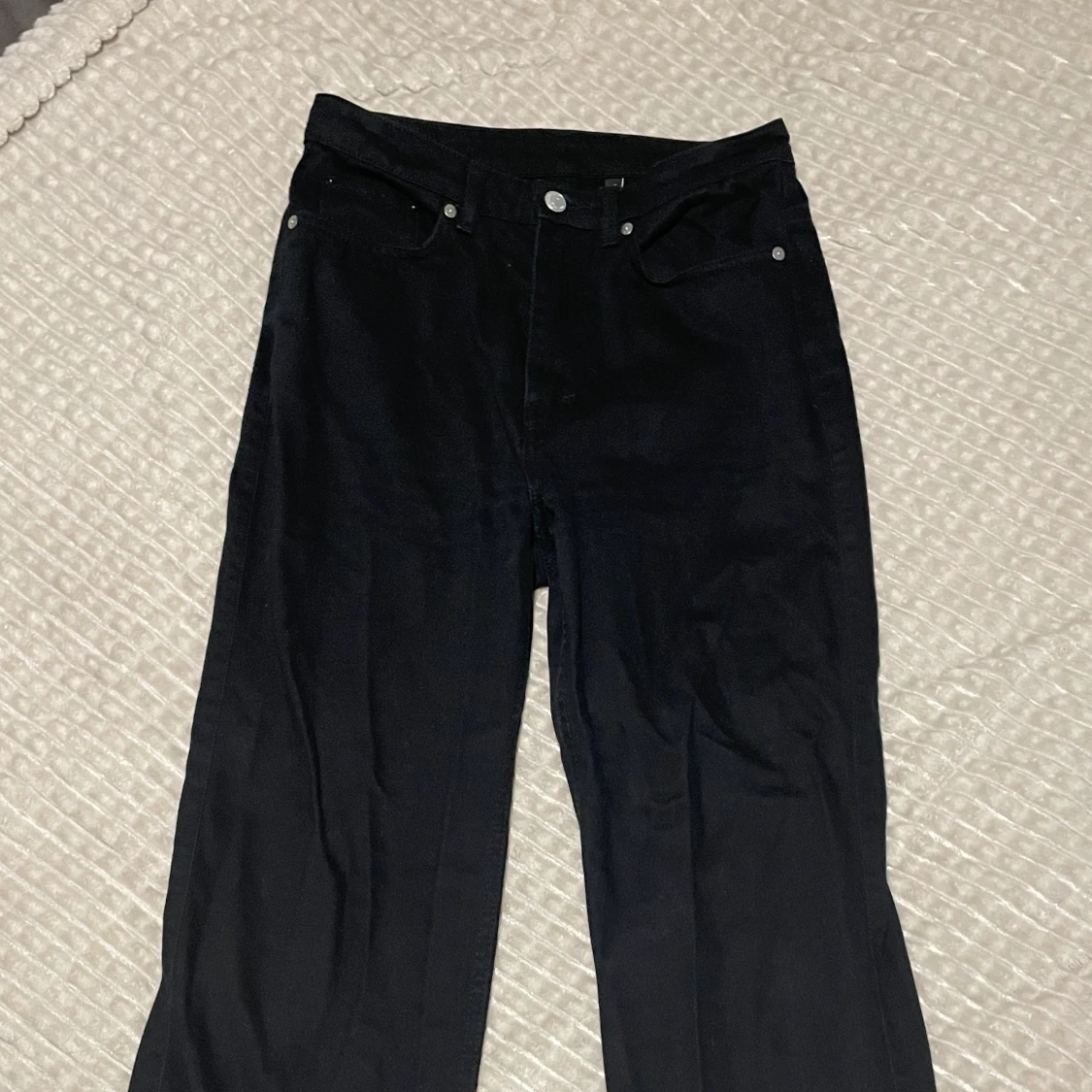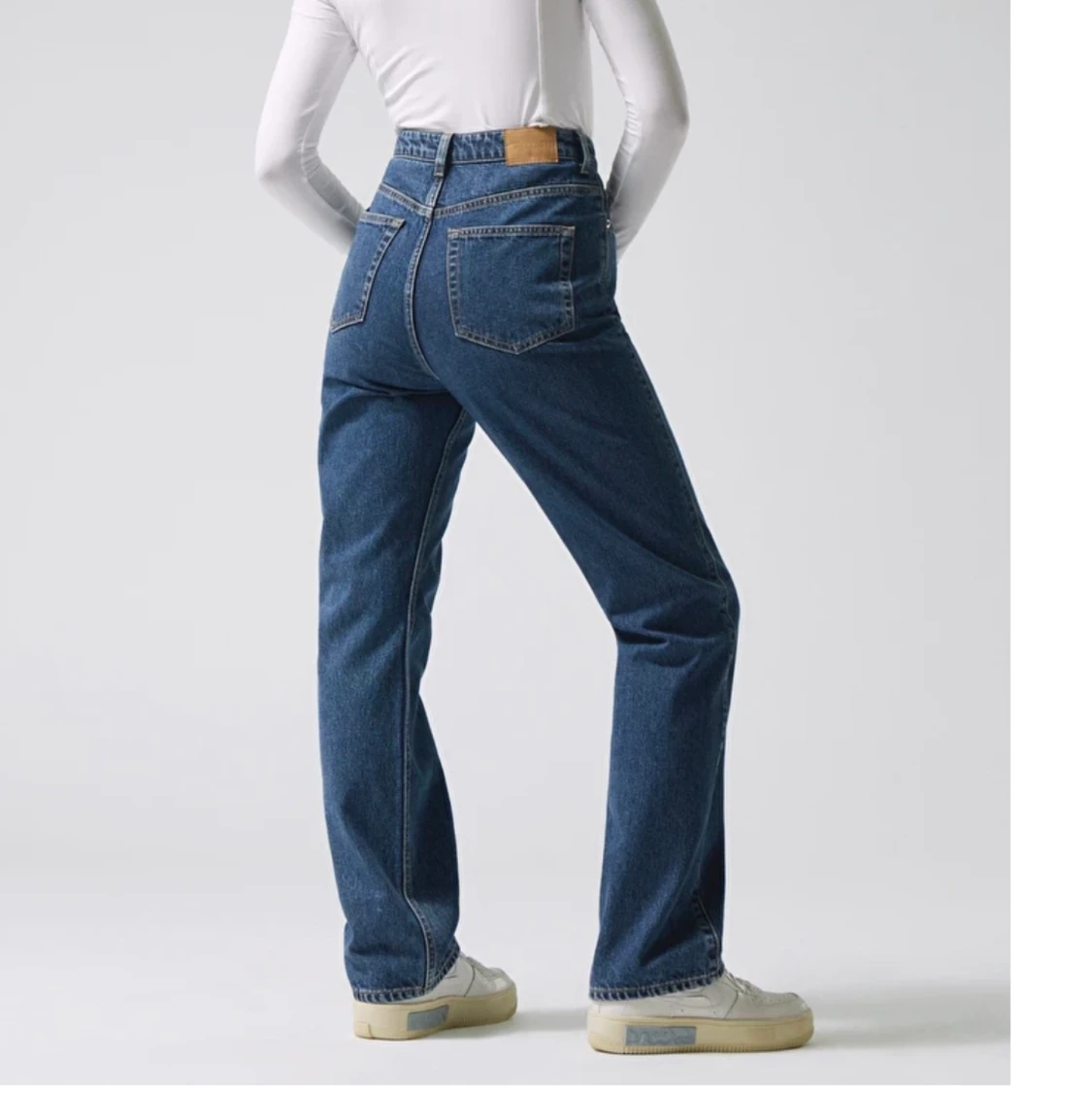 Svarta Rowe jeans från weekday, raka som sitter mycket längre över ankeln på mig som är 164cm