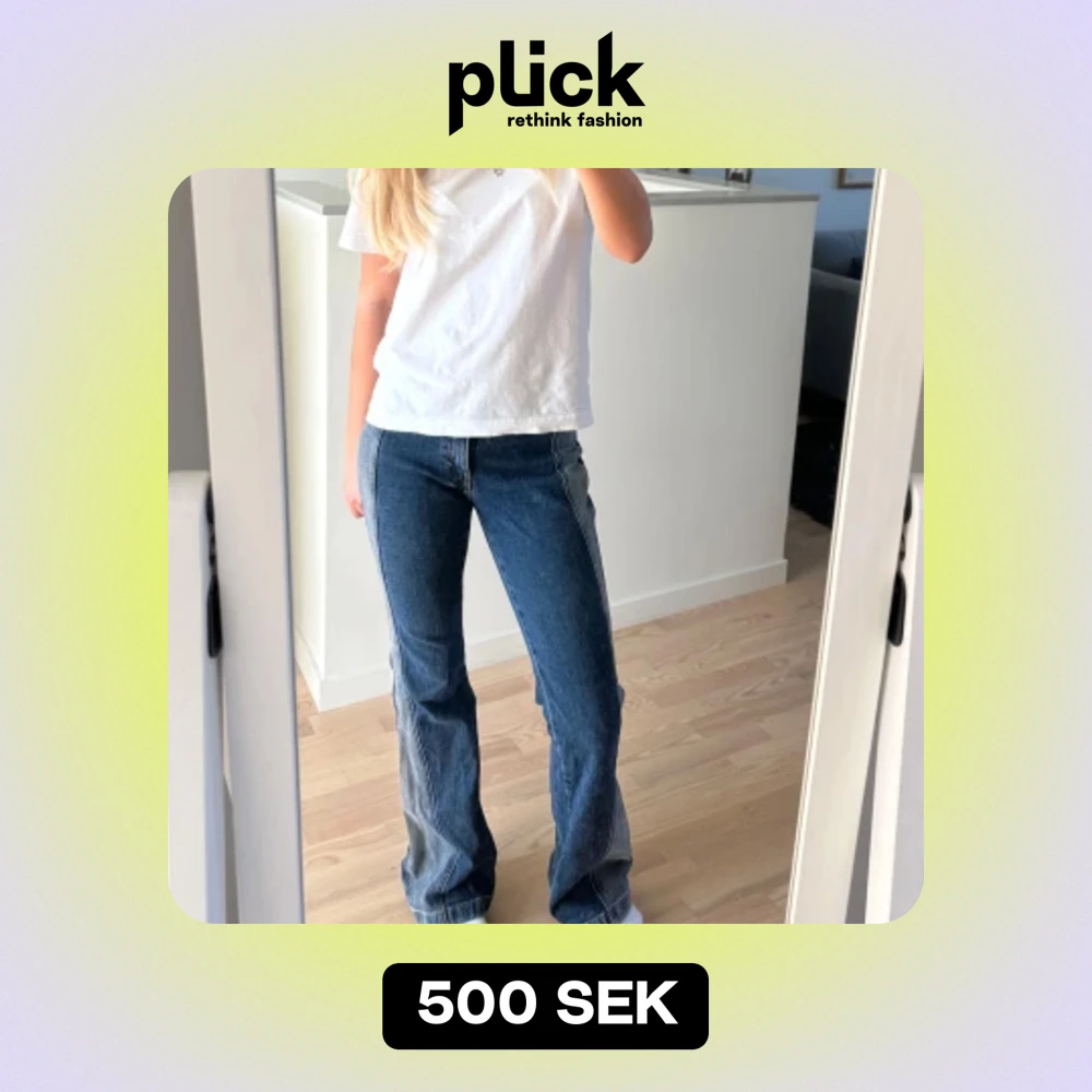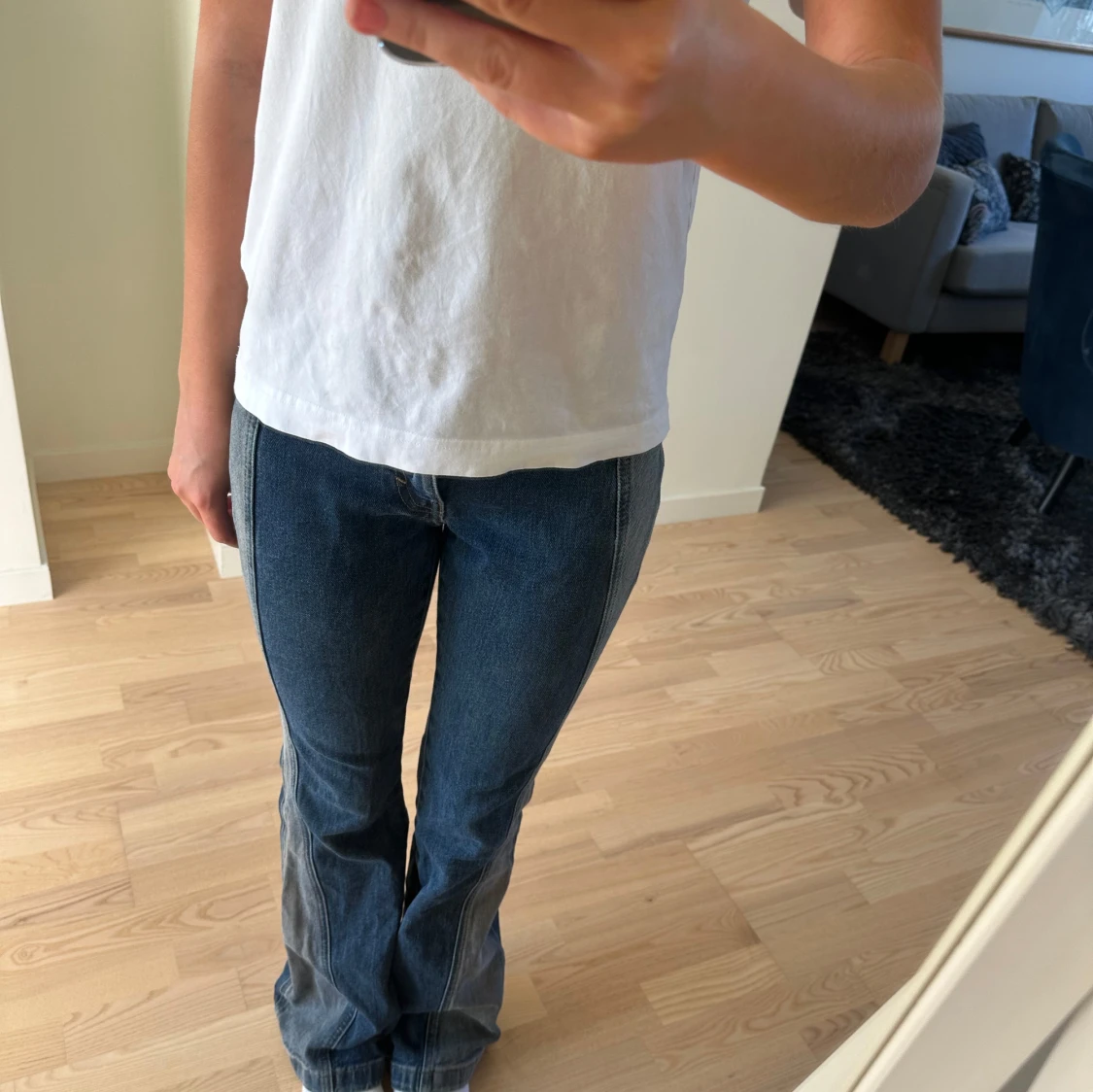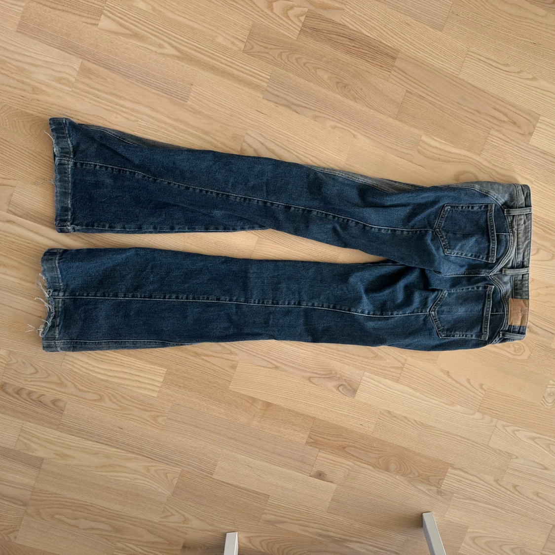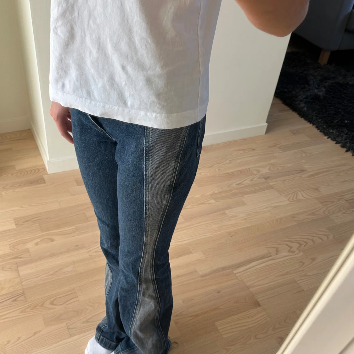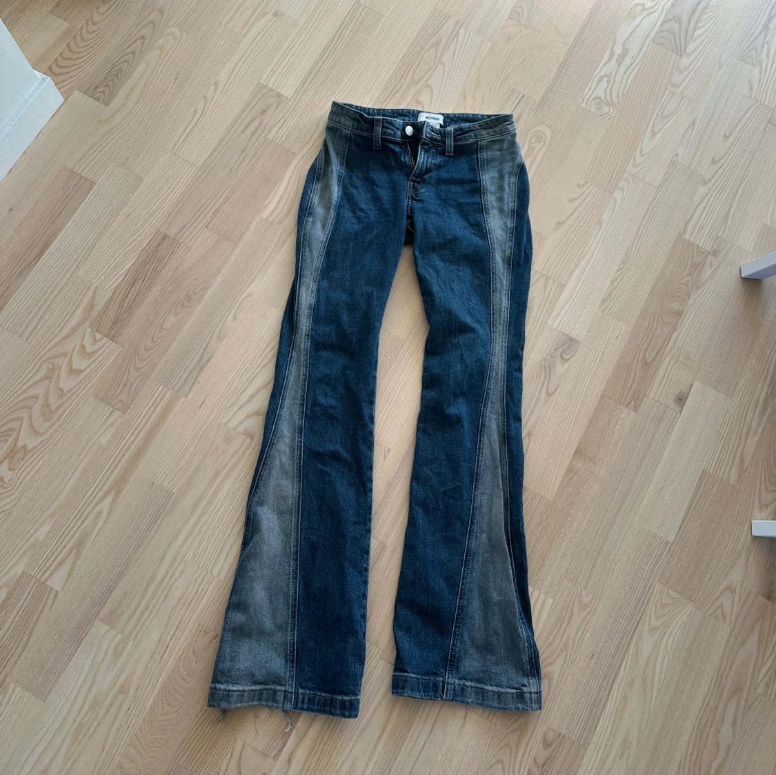 Trendiga jeans från weekday i storlek 24, passar mig som brukar ha xs/s i jeans.