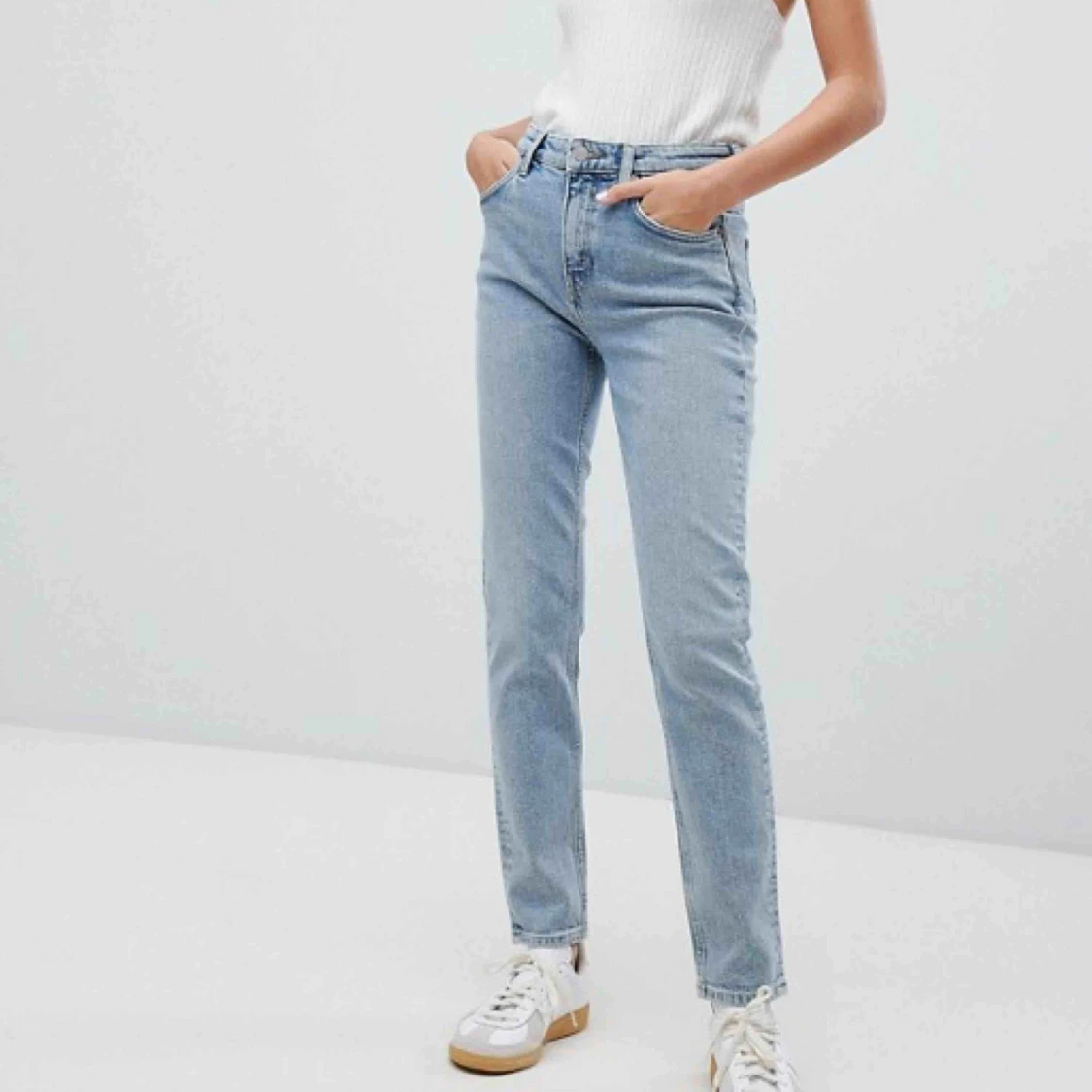 Jeans från Weekday i modellen WAY. Snygga mom-jeans i en ljus mellanblå färg. Köparen står för frakten 🌸