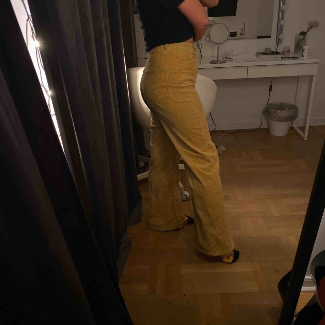 Säljer dom här snygga gula Manchester byxorna, dom är wide i modellen och jag köpte dom på weekday och dom är i väldigt bra skick! Dom sitter ganska tight på mig och jag är oftast en M i byxor!