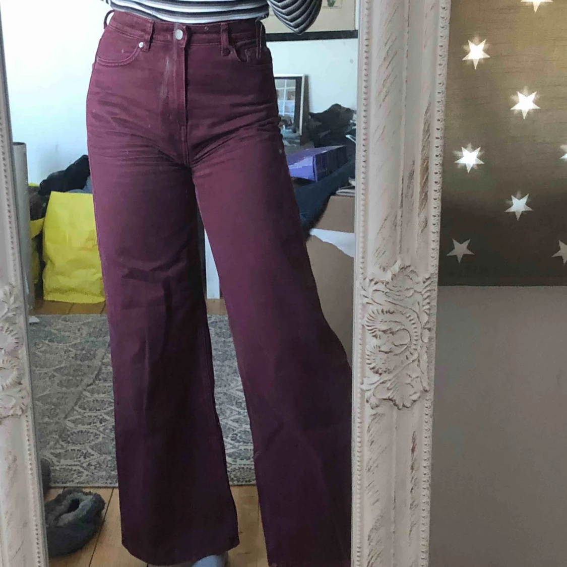 Säljer dessa snygga Weekday byxor, som är i modellen ace. De är i princip nya och har knappt använts. Storleken är 25/30 (som XS) och jag är 164cm på bilden, de passar mer en S dock. Frakten ligger på 63kr