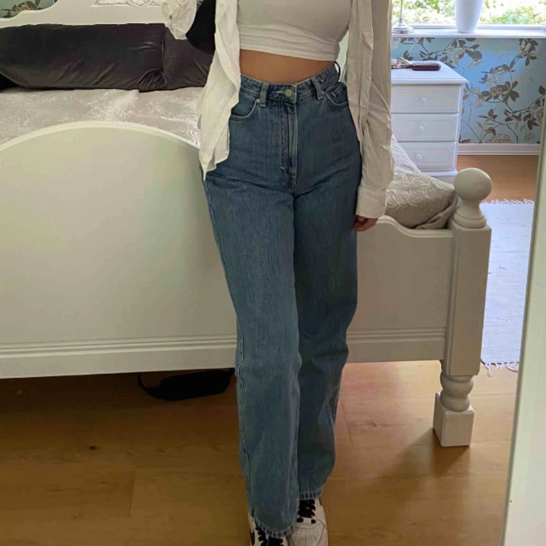 Jeans från Weekday i modellen Rowe och färgen sky blue! Storlek 30 i midjan och 30 i längd. En superfin färg på ett par jeans som sitter väldigt snyggt på. Säljer eftersom de är för stora för mig så fick köpa ett nytt par! !! Frakt ingår ej !!