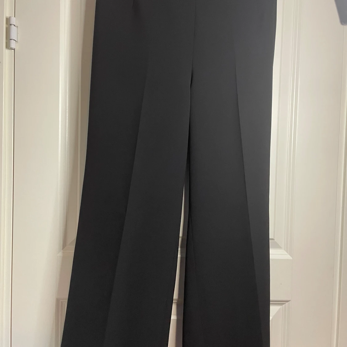 Snygga svarta kostymbyxor från Wera i storlek 38. Byxorna har en rak och vid passform med pressveck framtill för en clean look. Perfekta för dig som gillar stilrena och trendiga plagg. Materialet känns mjukt och följsamt.