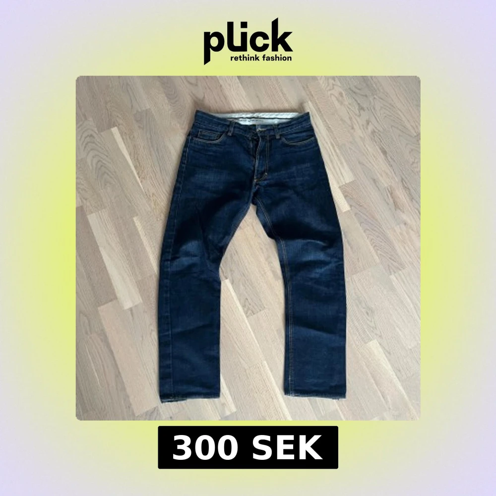 Snygga mörkblå jeans från Whyred, modell Smith. Klassisk femficksdesign med kontrastsömmar och rak passform. Jeansen är tillverkade i kraftigt denimtyg och har en stilren look som funkar till det mesta. OBS! (Byx längden är upplagd, innerben längd 71cm)