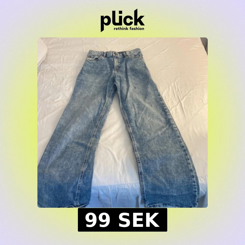Säljer ett par ljusblå jeans från Lindex i storlek 158. Modellen har breda ben och klassisk femficksdesign med snygga kontrastsömmar. Jeansen har en cool, avslappnad wide fit som ger en trendig vibe.