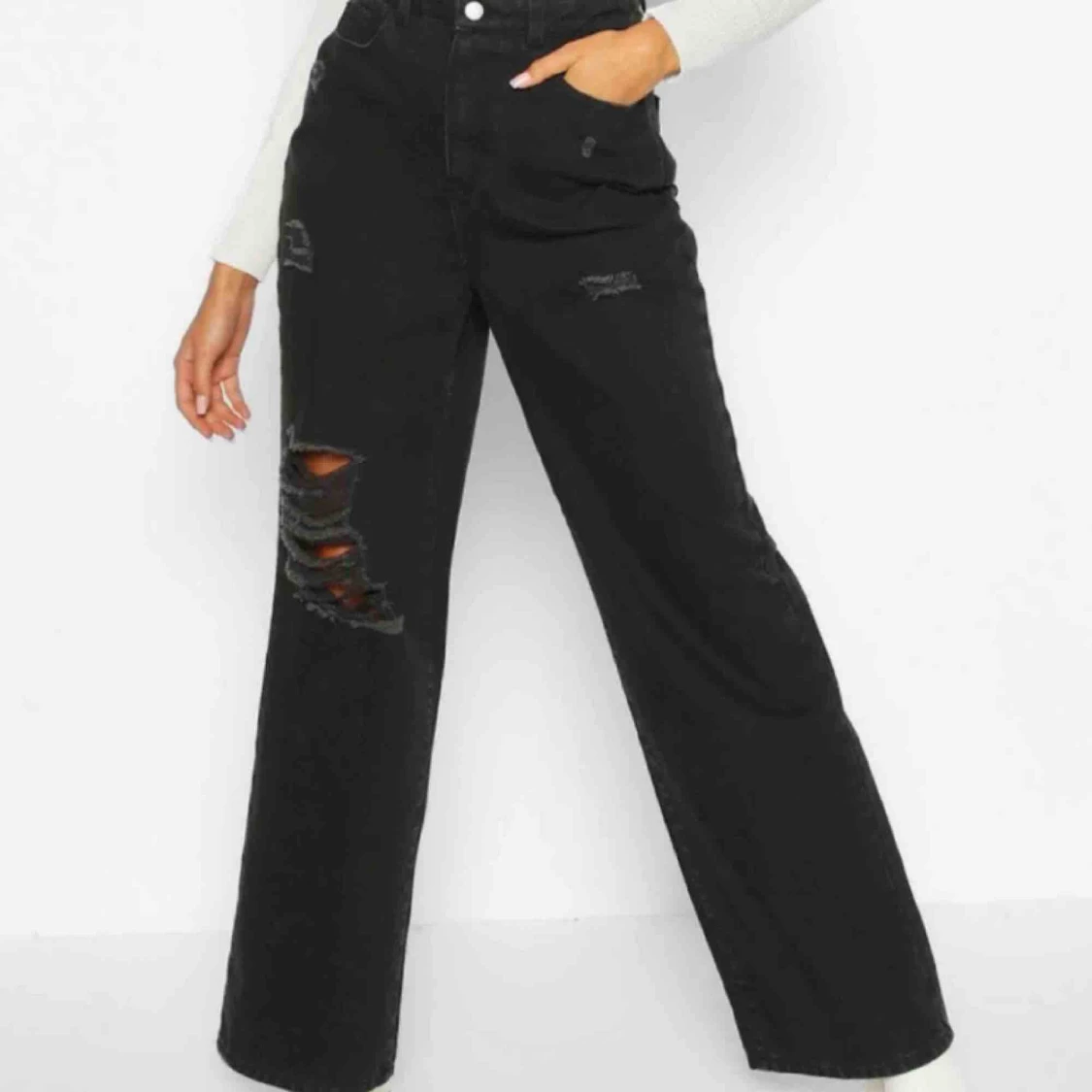 Coola jeans - Coola jeans med hål. Är ca 165 lång. Köpta här på plick för 550kr. Kom privat för fler bilder eller frågor!!❤️