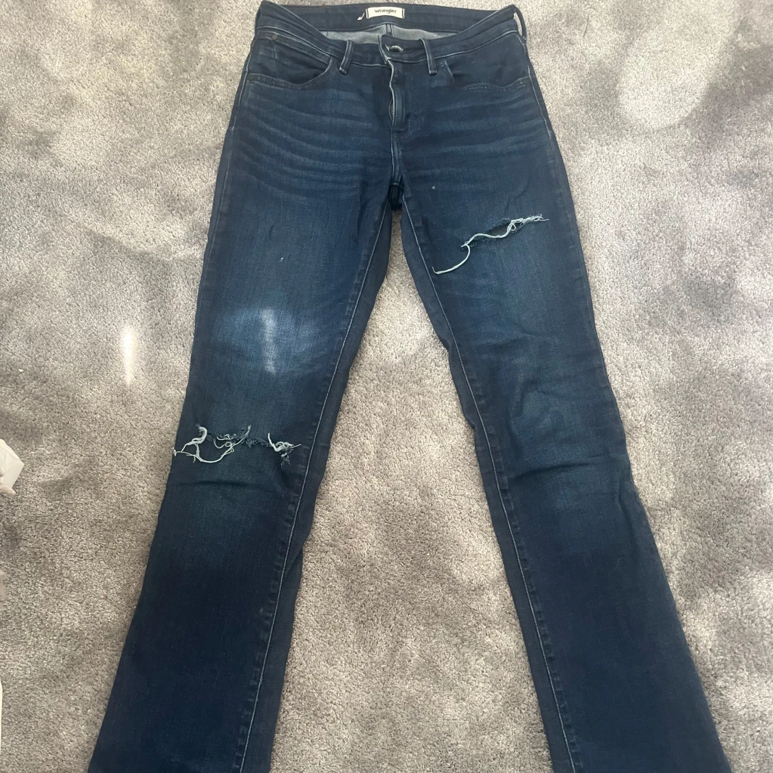 Lågmidjade jeans från Wrangel köpt för 1200kr. Egengjorda hål/slitningar. Inga defekter. Lägg gärna prisförslag.
