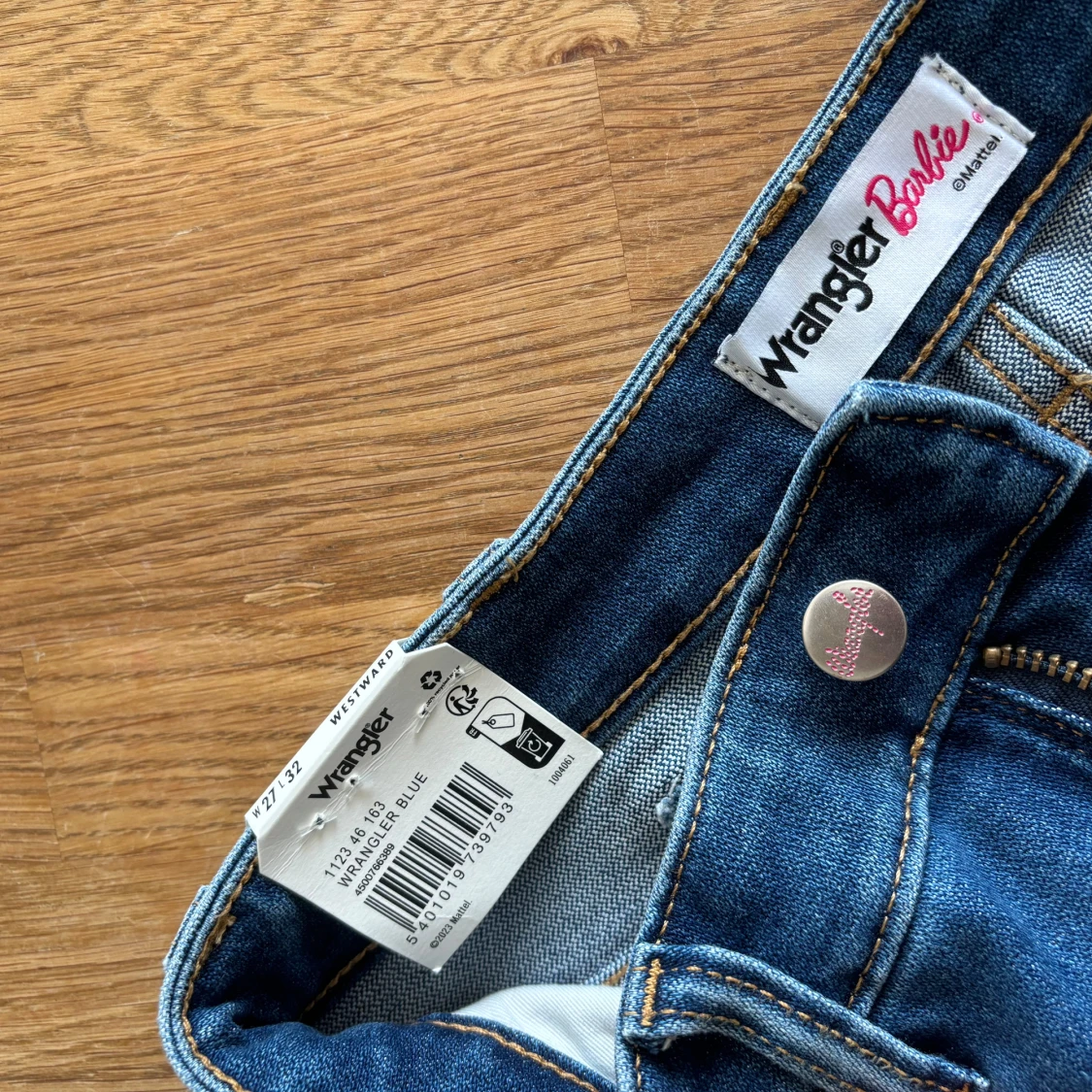 Helt nya magiska jeans som tyvärr va fel storlek på mig men vill inte betala frakt tillbaka så hoppas nån vill köpa här! Wrangler Westward 626 High Rise Bootcut med Barbie tema. Pris kan diskuteras