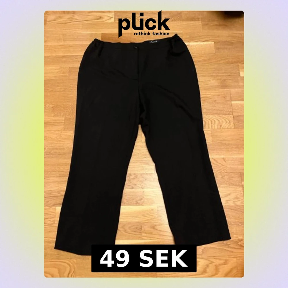 Säljer ett par svarta byxor från Facit med rak passform och enkel design. Byxorna är tillverkade i 100% polyester och har en knapp framtill. Perfekta för dig som gillar stilrena och klassiska plagg. XL-L
