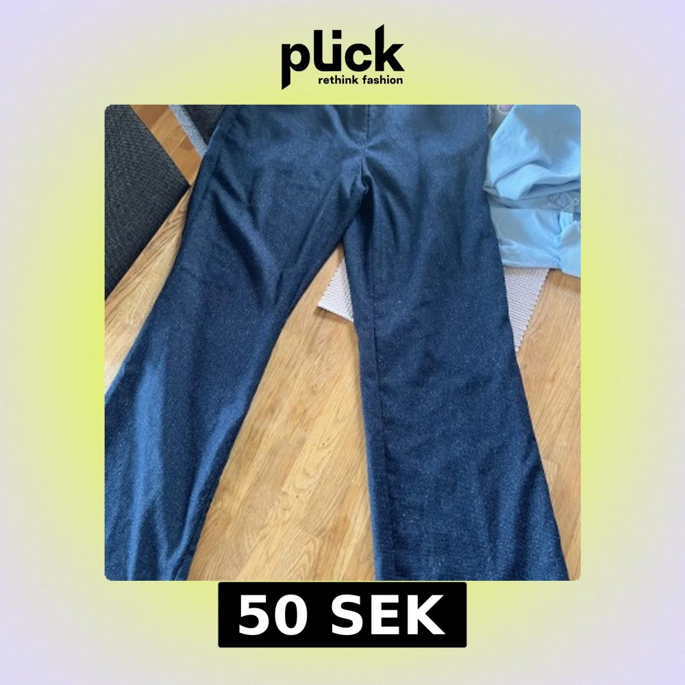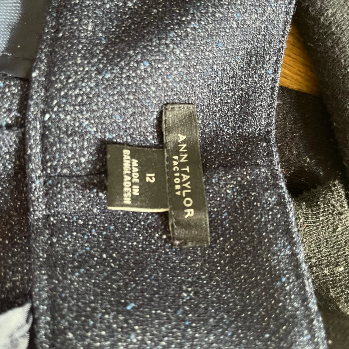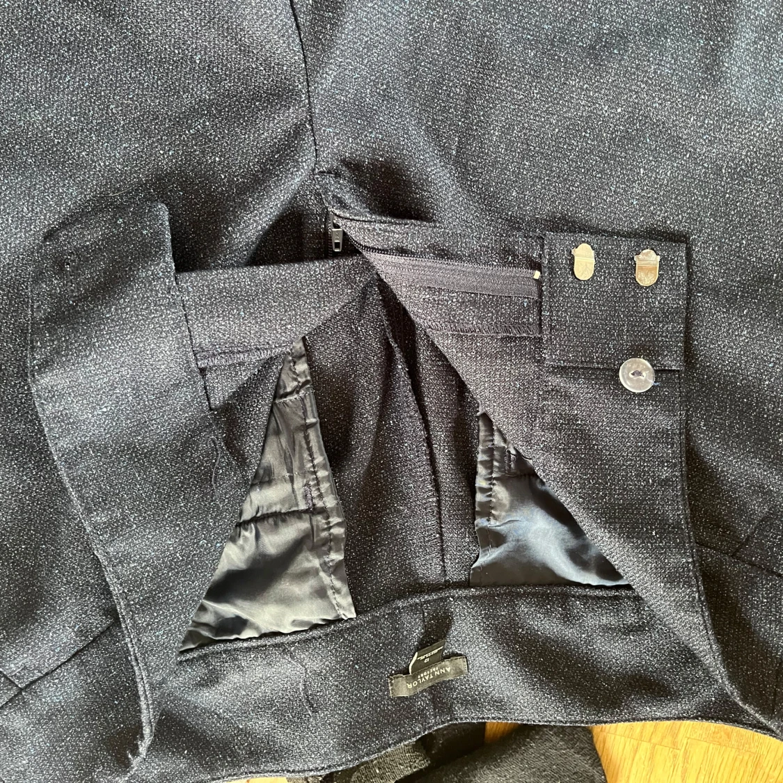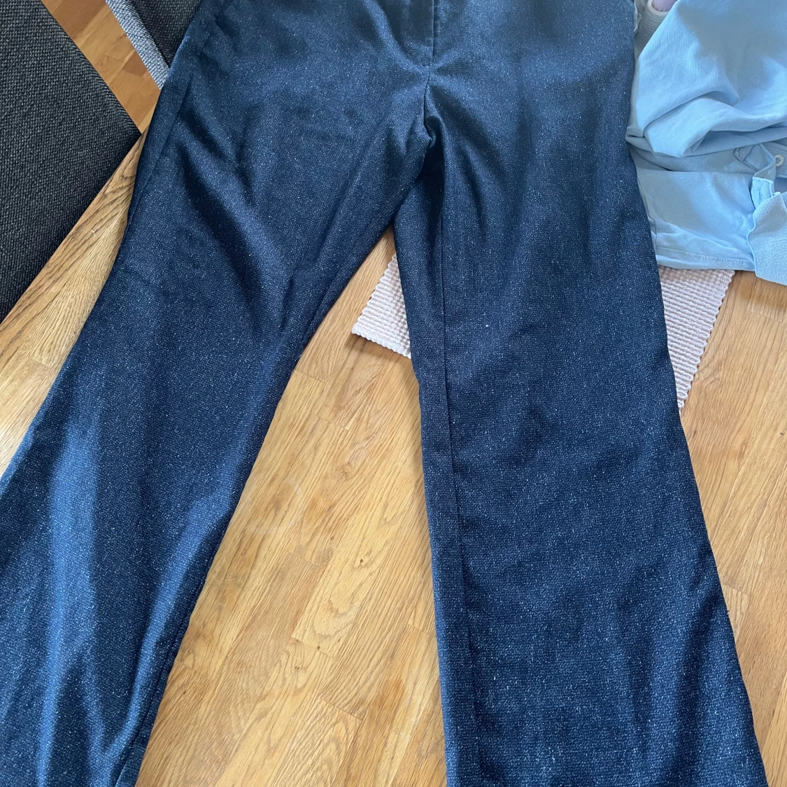 Snygga blåa byxor från Ann Taylor med en subtil glittrig effekt. Byxorna har en klassisk passform med dragkedja och knappar framtill. Perfekta för en elegant look.