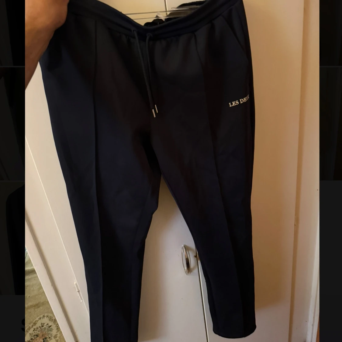 Snygga mörkblåa mjukisbyxor ifrån les deux som är i mycket bra skick. Otroligt sköna att ha på sig och passar till många olika tillfällen.