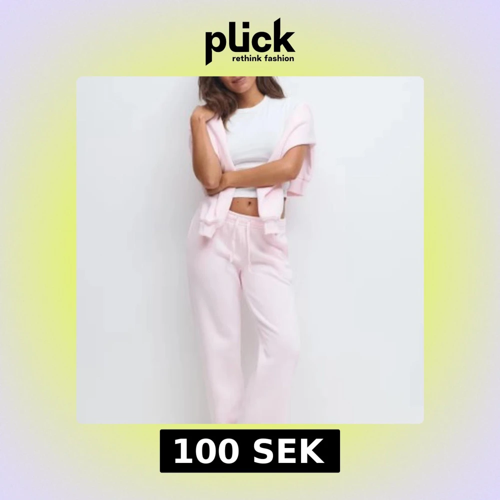 Säljer ett par ljusrosa mjukisbyxor med raka ben och resår i midjan samt snörning. Byxorna är i mjukt bomullsmaterial och har en avslappnad passform. Har tyvärr fått smink i botten på en av byxbenen.